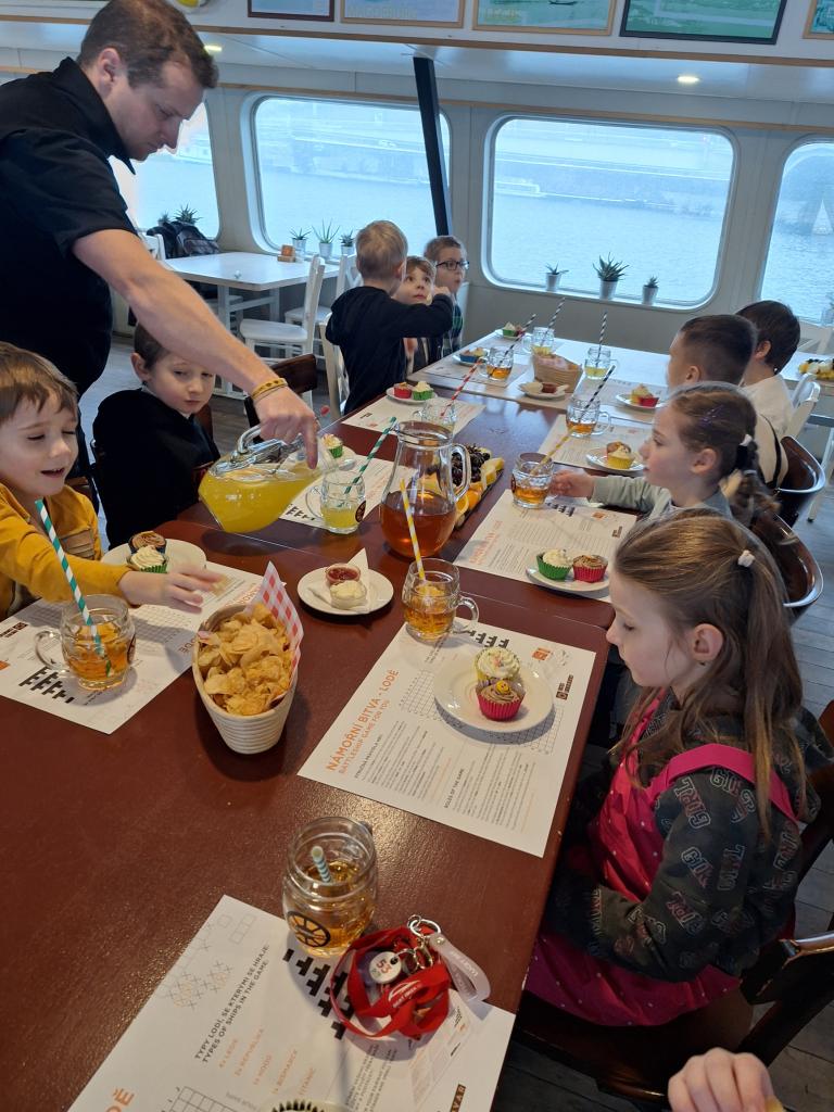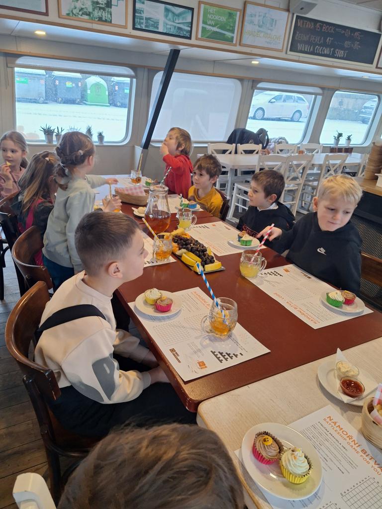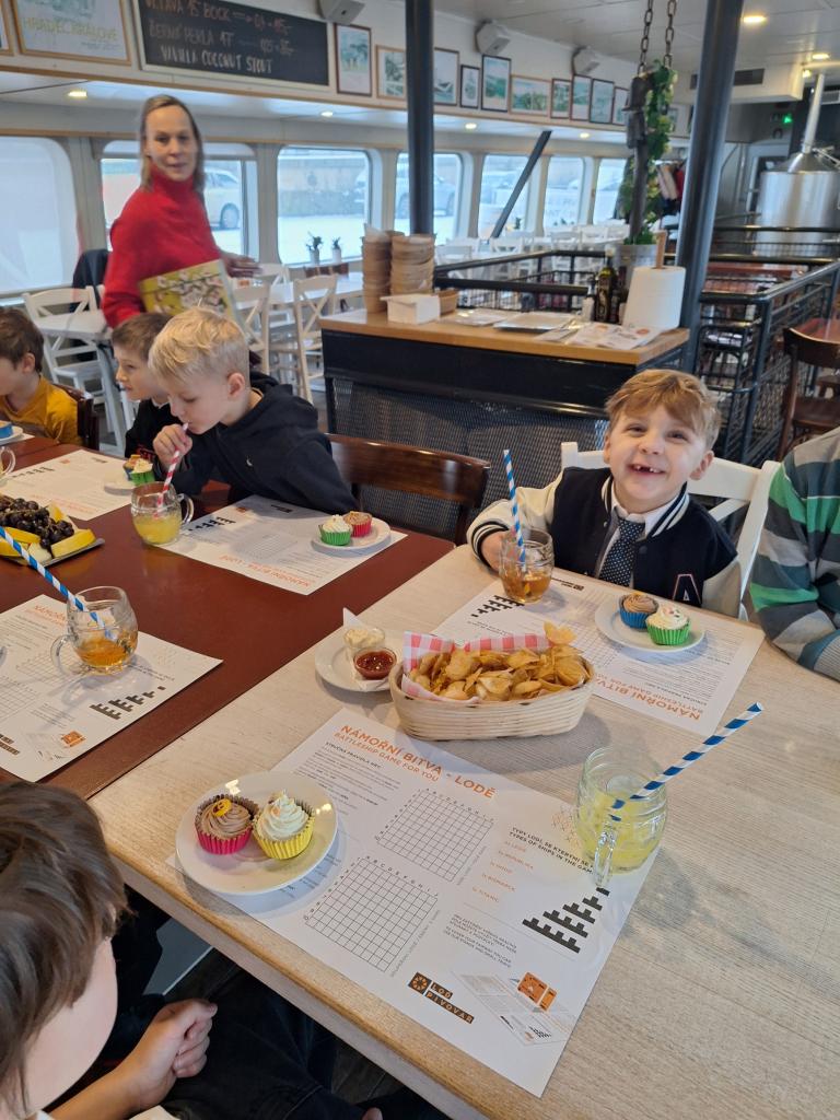 Dnešní prvni slavnostni výpis vysvědčení jsme si předali na lodi Pivovar, kde na nás čekalo i sladké překvapení, mísy ovoce, domácí limonáda a čaj. Měli jsme také moznost seznámit i s výrobou piva. Děkujeme.