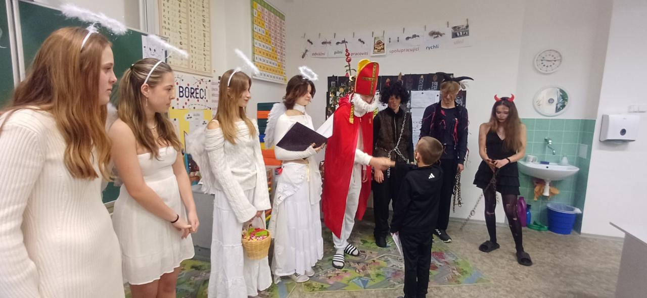 Děkujeme Mikuláši, andělům i čertům, že si na nás udělali čas a přišli za námi do školy. Byl to moc pěkný zážitek. Těšíme se na příští rok :-).