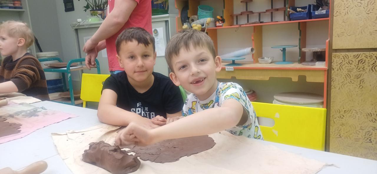 Děti měly možnost se seznámit jak se pracuje s hlínou, jaké má vlastnosti a strukturu. Vše jim vysvětlili studenti učiliště Martin, kteří jim krok po kroku říkali, jak postupovat. Úžasné propojení světů malých a velkých dětí, kteří spolu kooperovali, spolupracovali a smáli se :-).
