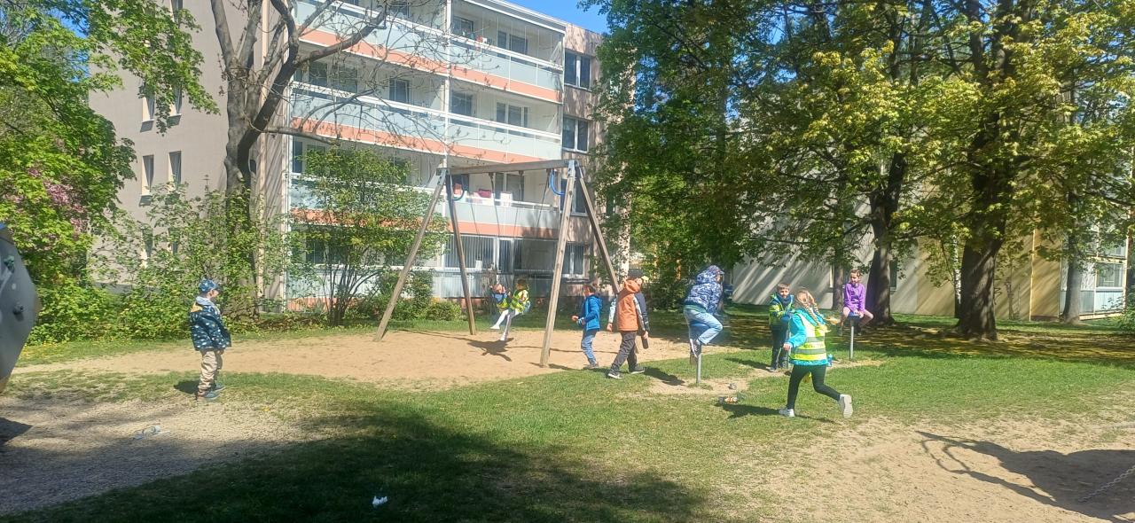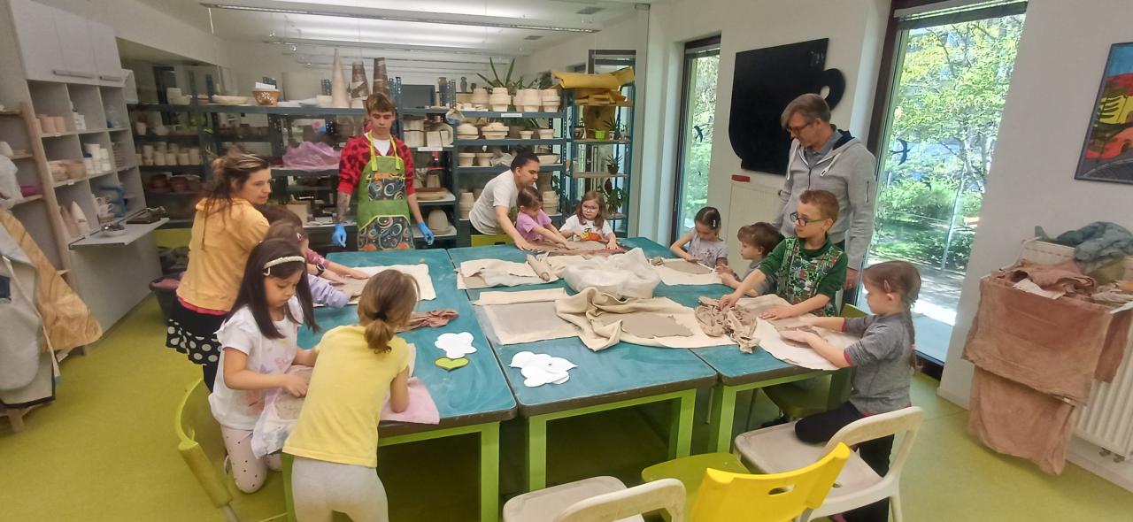 Děkujeme učitelům z keramického oddělení za trpělivost :-). Celé kreativní dopoledne jsme zakončili protažením na blízkém dětském hřišti.