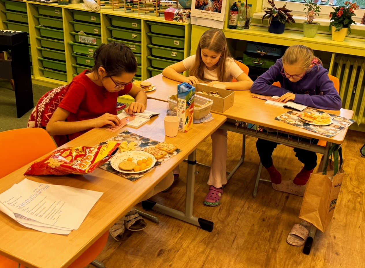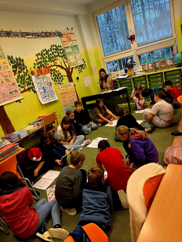 Společný adventní čas - zpívání, čtení a vzájemně příjemně strávený čas během třídních i školních akcí zakončený vánoční besídkou a dárečky.