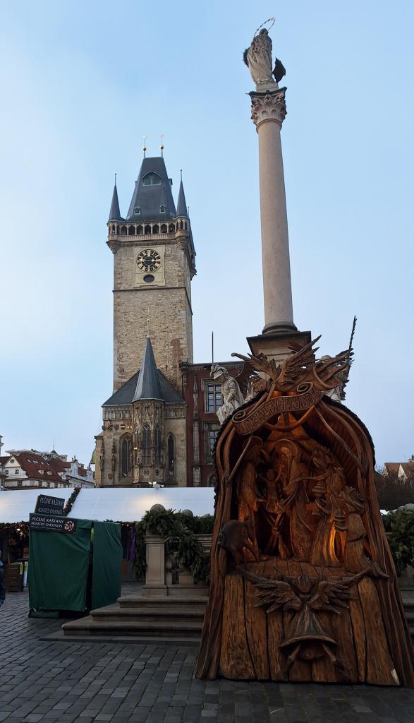 Naše vánoční vlastivědná procházka začala u Právnické fakulty UK. Poloprázdnou luxusní Pařížskou ulicí jsme prošli na vánoční trhy na Staroměstském a Mariánském náměstí - bez davů lidí, ale i bez občerstvení...:-). Vše se kolem 10. hodiny teprve probouzelo...
