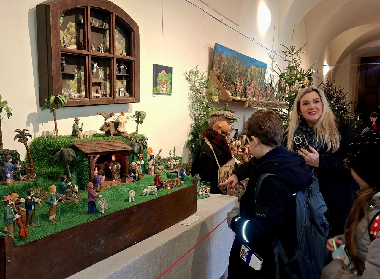 Z Ladových Vánoc jsme pokračovali Husovou a Perlovou ulicí přes pasáž Platýz do kostela Panny Marie Sněžné a na výstavu betlémů - velmi různě pojatých...