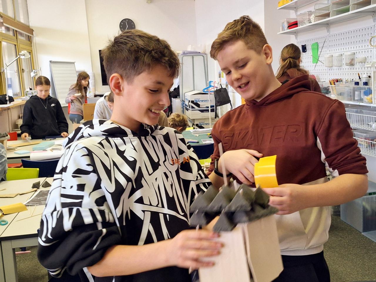 Výsledné modely pak skupiny okomentovaly a společně s lektorem Martinem zhodnotili, co se podařilo.