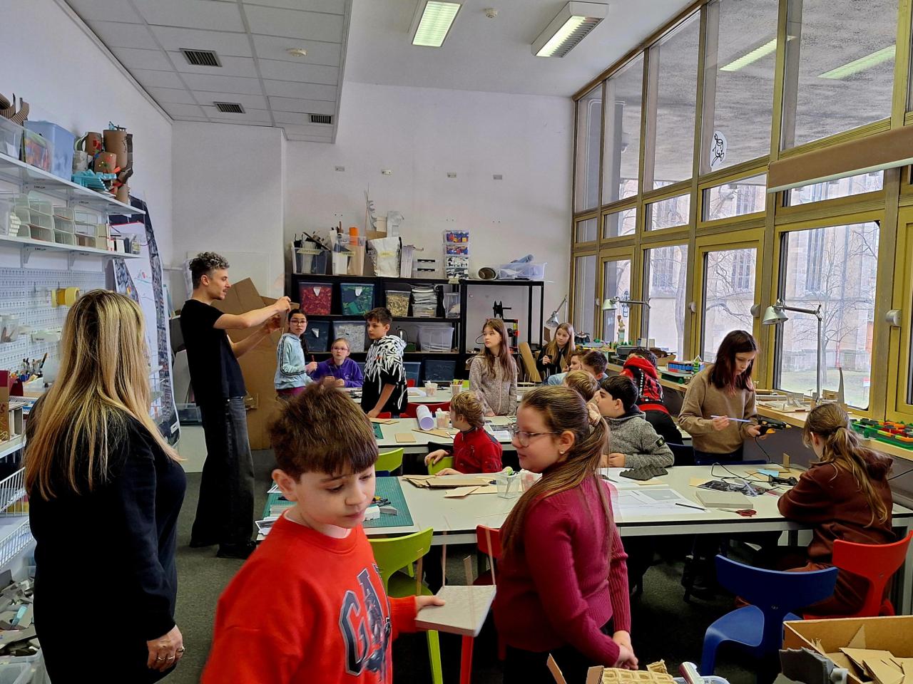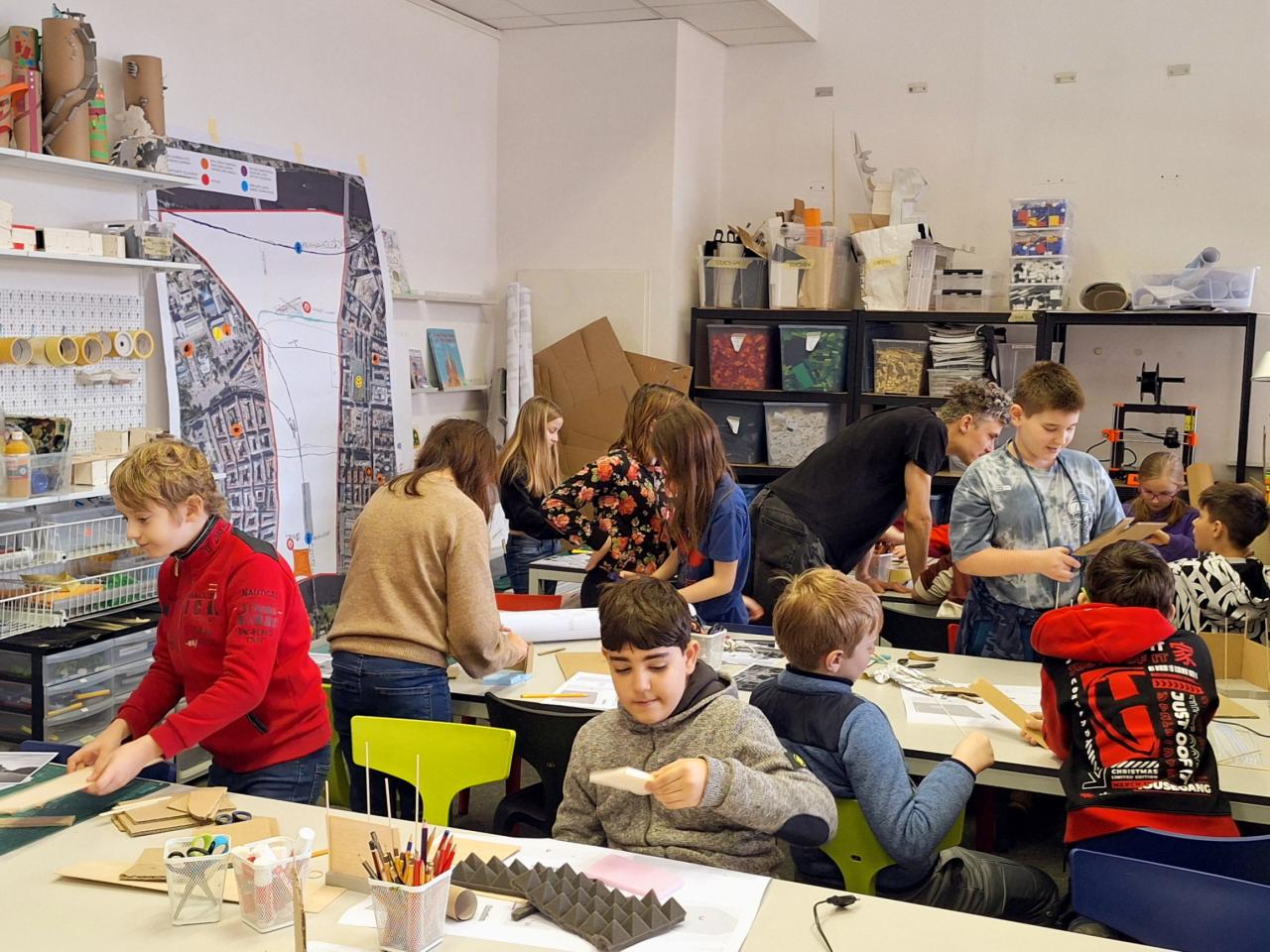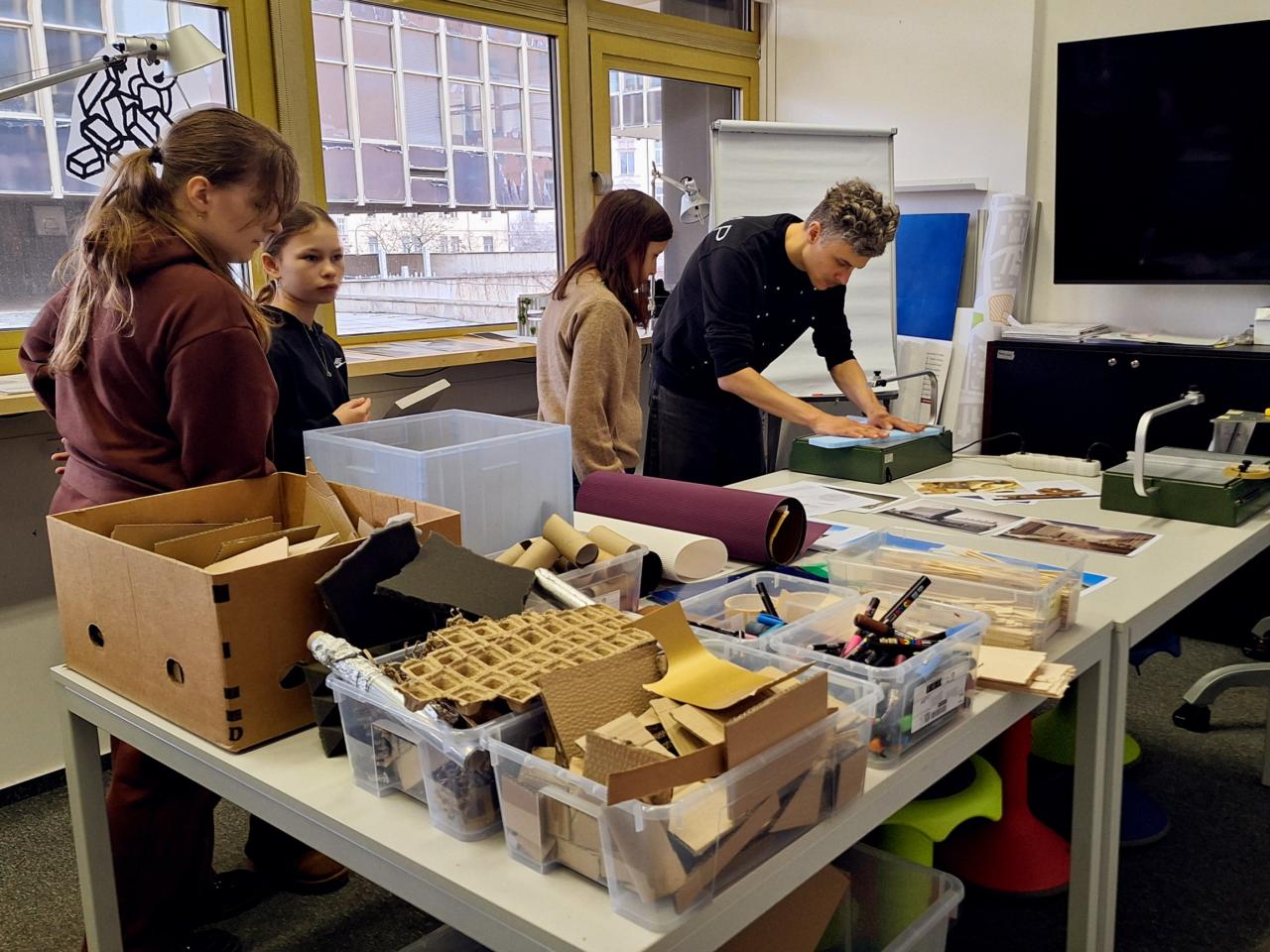 A výstava i následný workshop byly úžasné - děti si úplně přirozeně propojily všechny vyučovací předměty při zhlédnutí a prolistování zajímavých českých i cizojazyčných knih a publikací v knihovně CAMPu, dobových reklam, informačních panelů vztahujících se k historii Prahy v letech 1989 - 2004, při poslechu komentáře lektora i multimediální projekci - a hlavně při vlastní tvořivé činnosti v malých skupinách - navržení a zhotovení modelu domu na dané parcele do proluky ve smíchovské ulici (najednou přišly k užitku také matematické - a hlavně geometrické znalosti a dovednosti):-)) s ohledem na ostatní zástavbu, přírodu, ekologii, vlastní zodpovědnost...