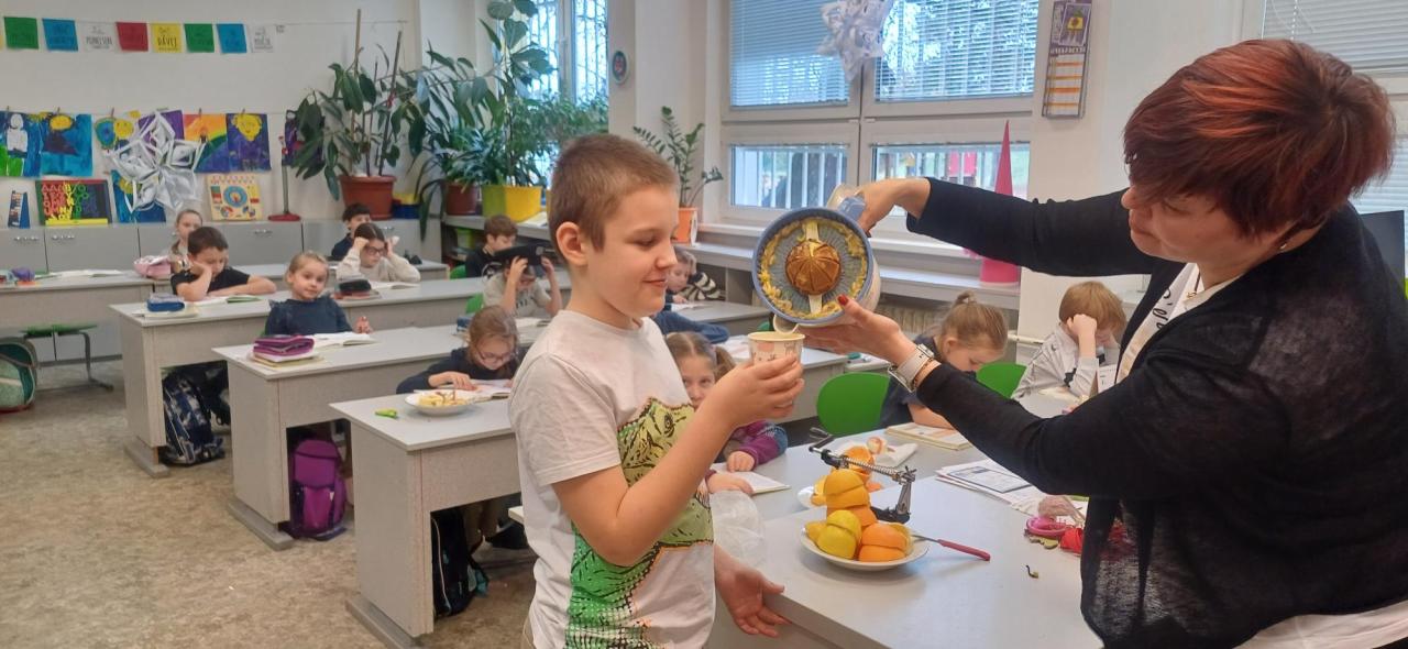 Z odšťavněných pomerančů jsme vytvořili krmítka pro ptáčky a pověsili do atria a na školní hřiště :-). V průběhu zimy budeme doplňovat semínka, která děti přinesly z domova, děkujeme! Vše budeme bedlivě pozorovat.