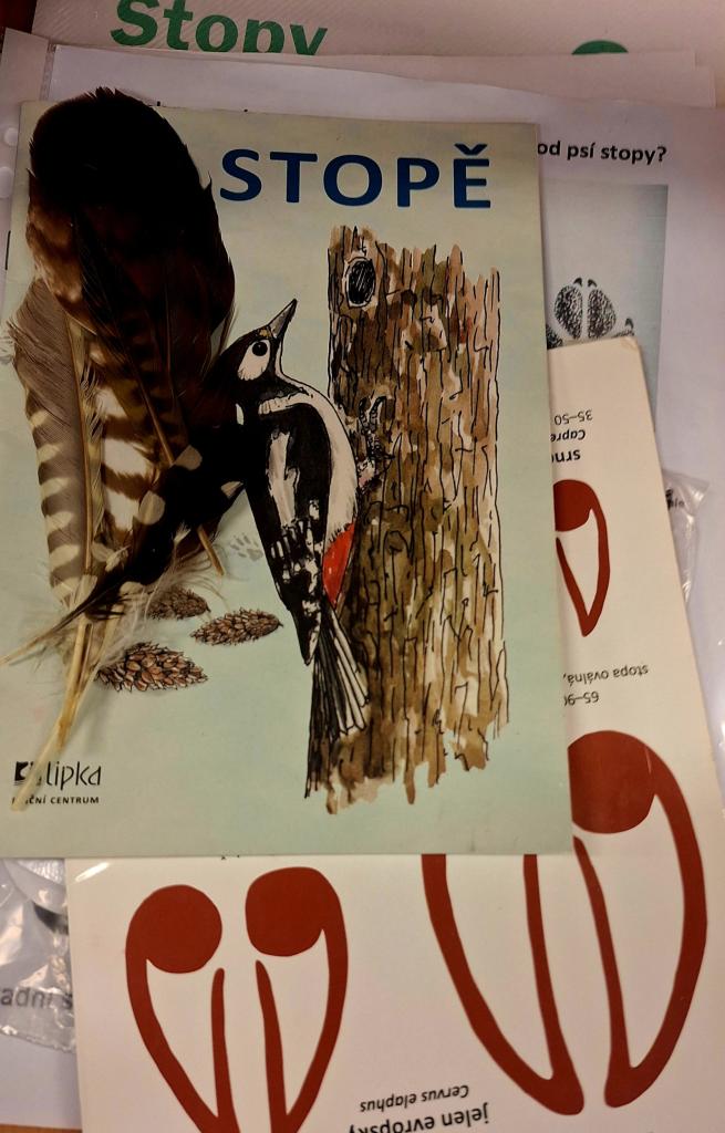 Následně jsme se věnovali stopám živočichů, kteří se pohybují v české přírodě - umíme podle stop určit několik živočichů.
