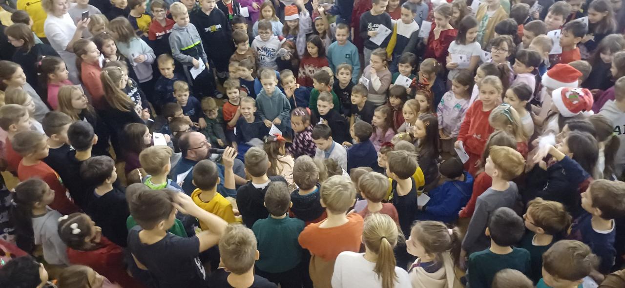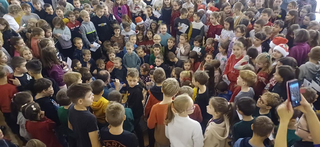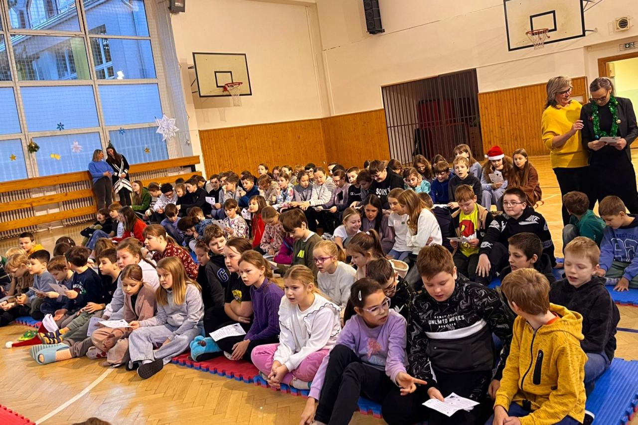 Ve čtvrtek před vánočními prázdninami se konala další akce školního parlamentu - vánoční besídka. Žáci 2. stupně pomohli 1. stupni vytvořit pozvánku a vyzdobit tělocvičnu. Společně se pak žáci 1. stupně za pomoci zpěvu koled naladili na vánoční atmosféru. Akci si žáci užili.
