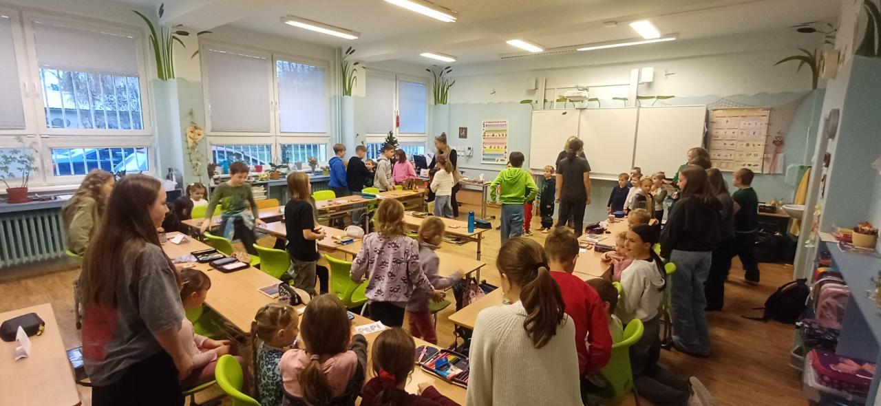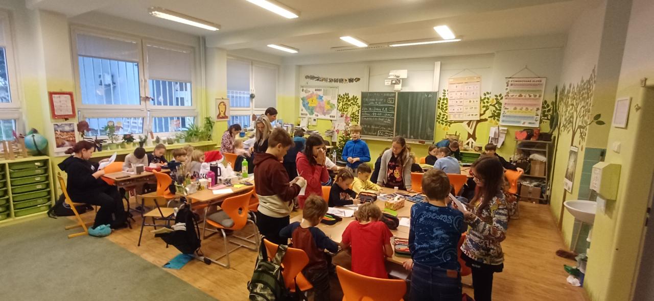 Děti z MŠ Litvínovské a Veltruské si přišly užít vánoční atmosféru mezi školáky. Děti ze 4. a 5. ročníků si pro děti připravily tvoření vánočních ozdob a dekorací. Vše se moc povedlo dle , starší děti pomáhly. Společně tak všichni strávili pěknou vánoční atmosféru.