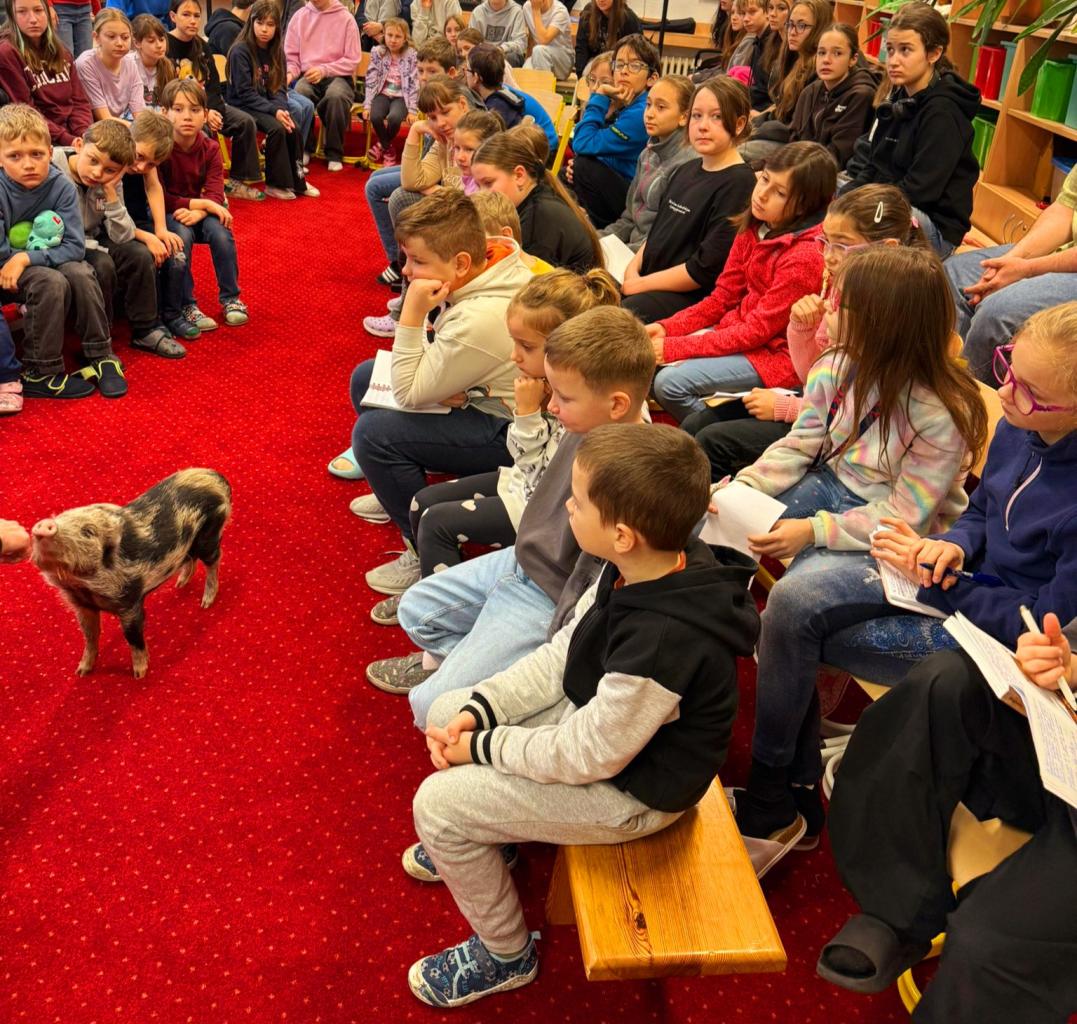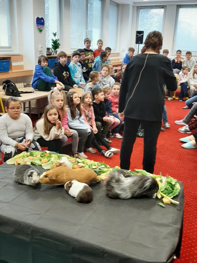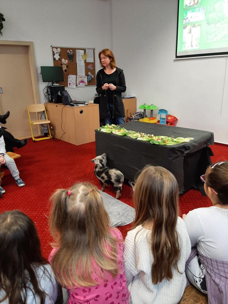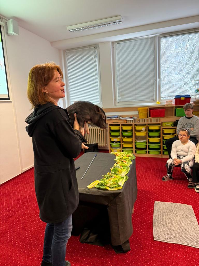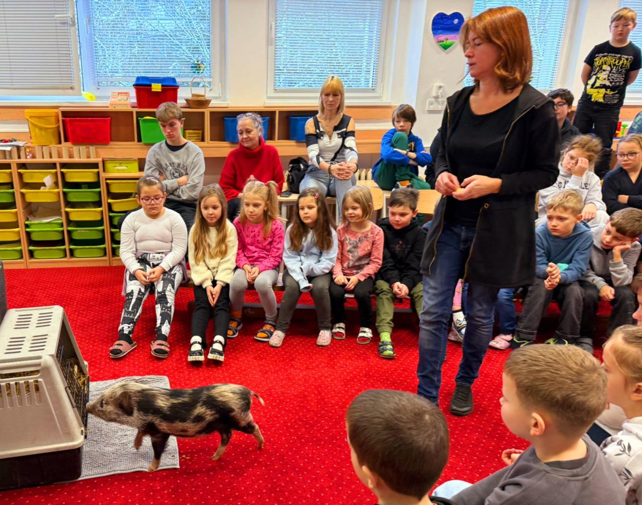 Přednáška se zajímavou prezentací a živými zvířaty (děti i dospělé nadchl Alfík, Mary Lou a několik druhů morčat) nám představila různé druhy prasat z celého světa a poskytla hodně námětů k přemýšlení. Ve výuce se budeme k získaným informacím, dojmům i zážitkům vracet a využívat je.