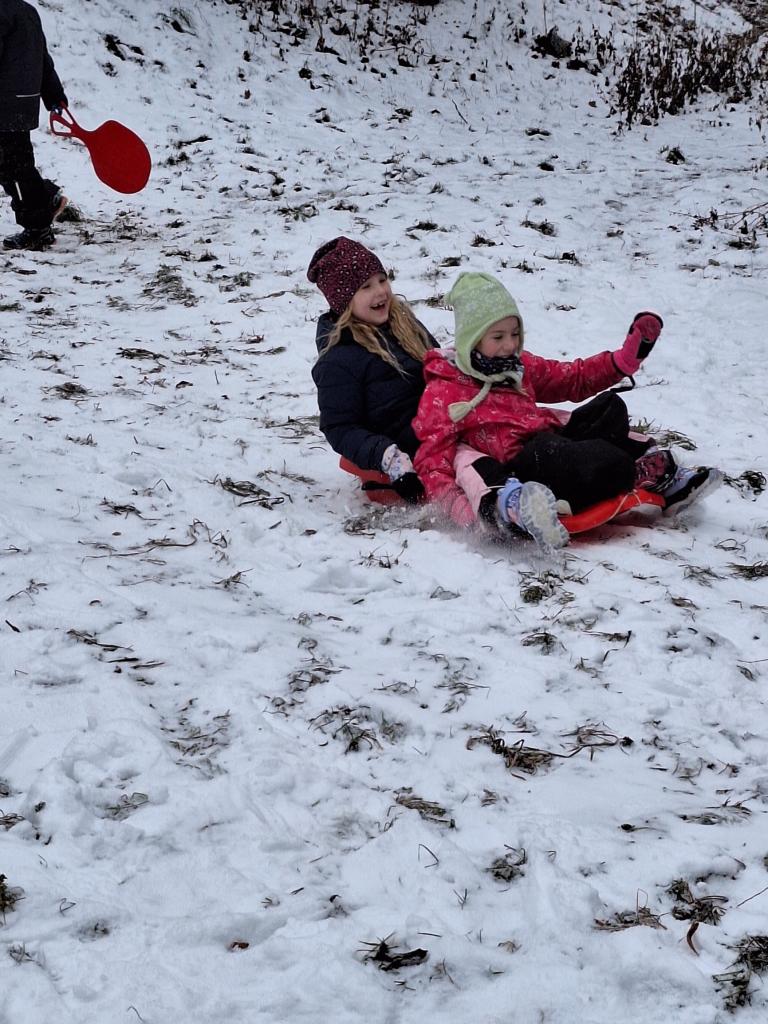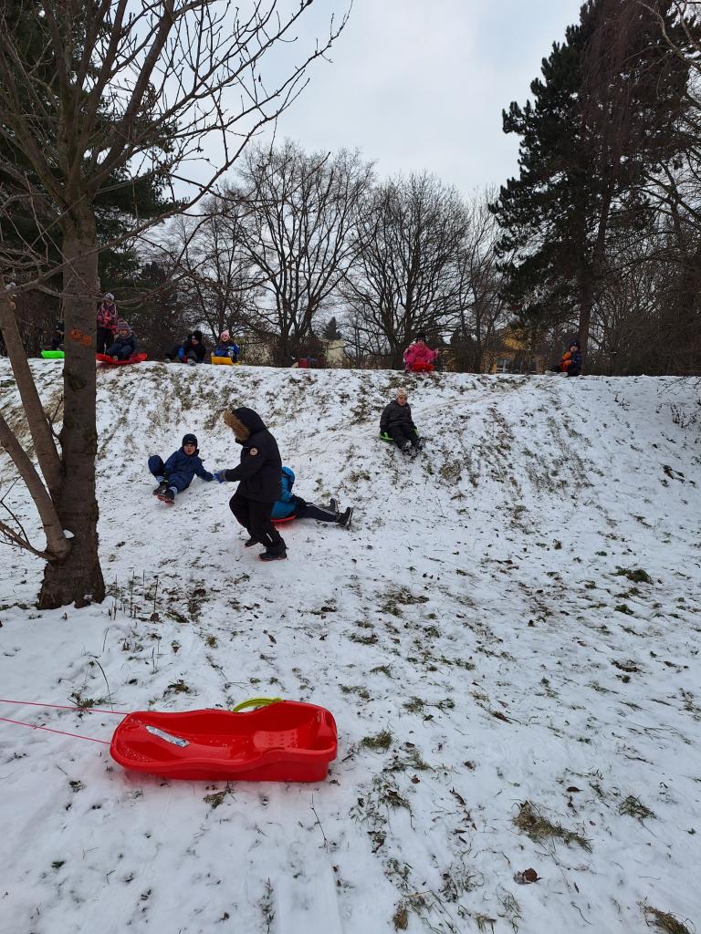 Dnešní hodina tělocviku na sněhu. Krásné jsme si to užili.