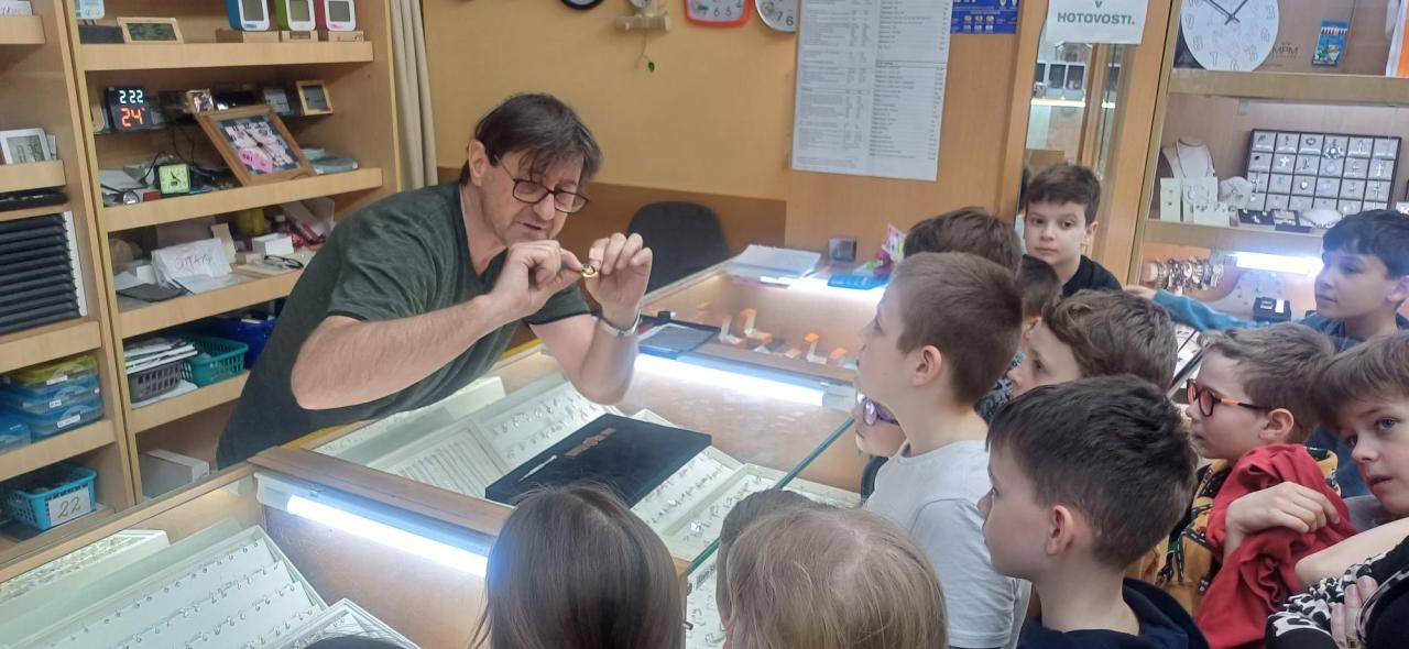 V rámci prvouky - téma povolání - jsme se vydali do hodinářství a zlatnictví Melichar, kde se nám po skupinách všichni pracovníci věnovali a ukázali nám jejich mistrovské umění. Děkujeme za tak jedinečný zážitek, kde jsme si všichni uvědomili, jak je důležité býti trpěliví.