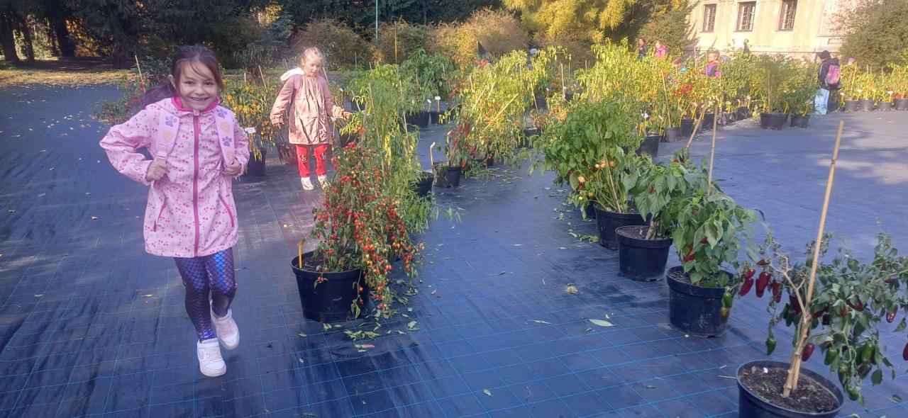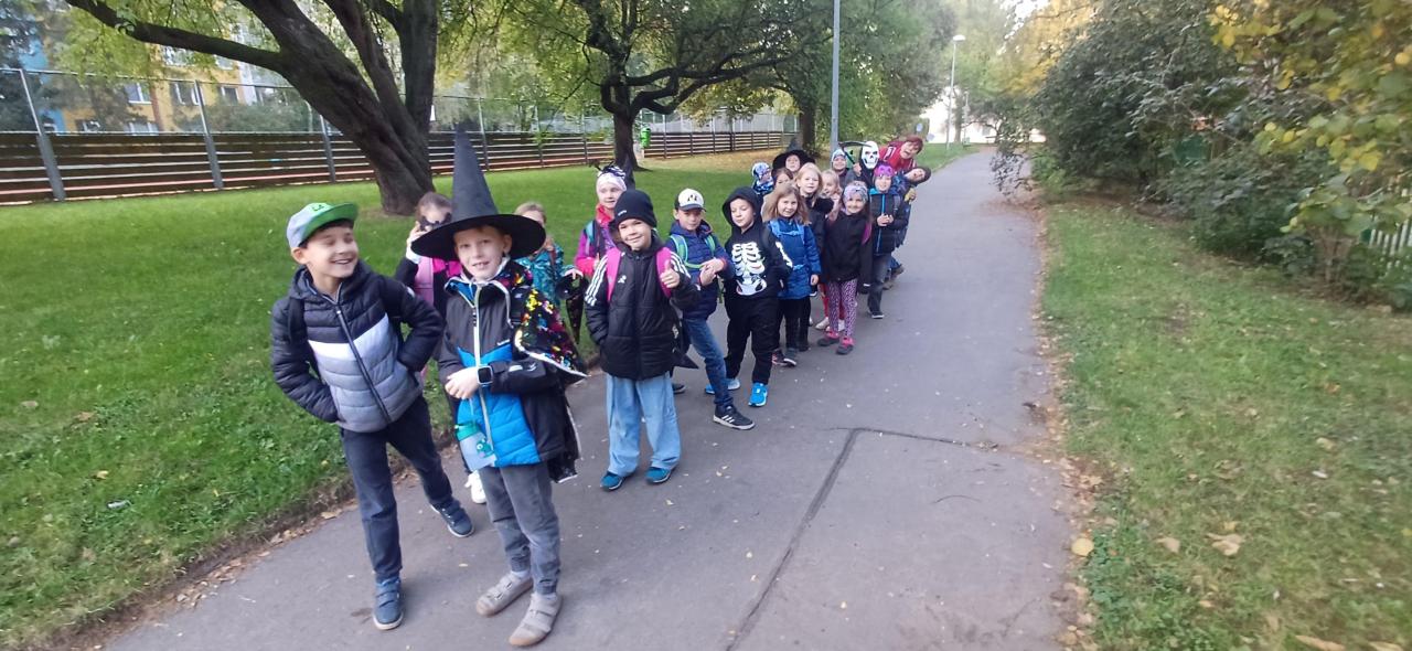 Na výstavu dýní v Malešicích jsme se těšili a stylově se oblékli ;-). Viděli jsme krásně aranžované dýně, poznávali i různé druhy zeleniny, obdivovali jsme pálivé papričky, hádali jsme nejpálivější a vše jsme propojili s poznáváním stromů a hádankami :-).