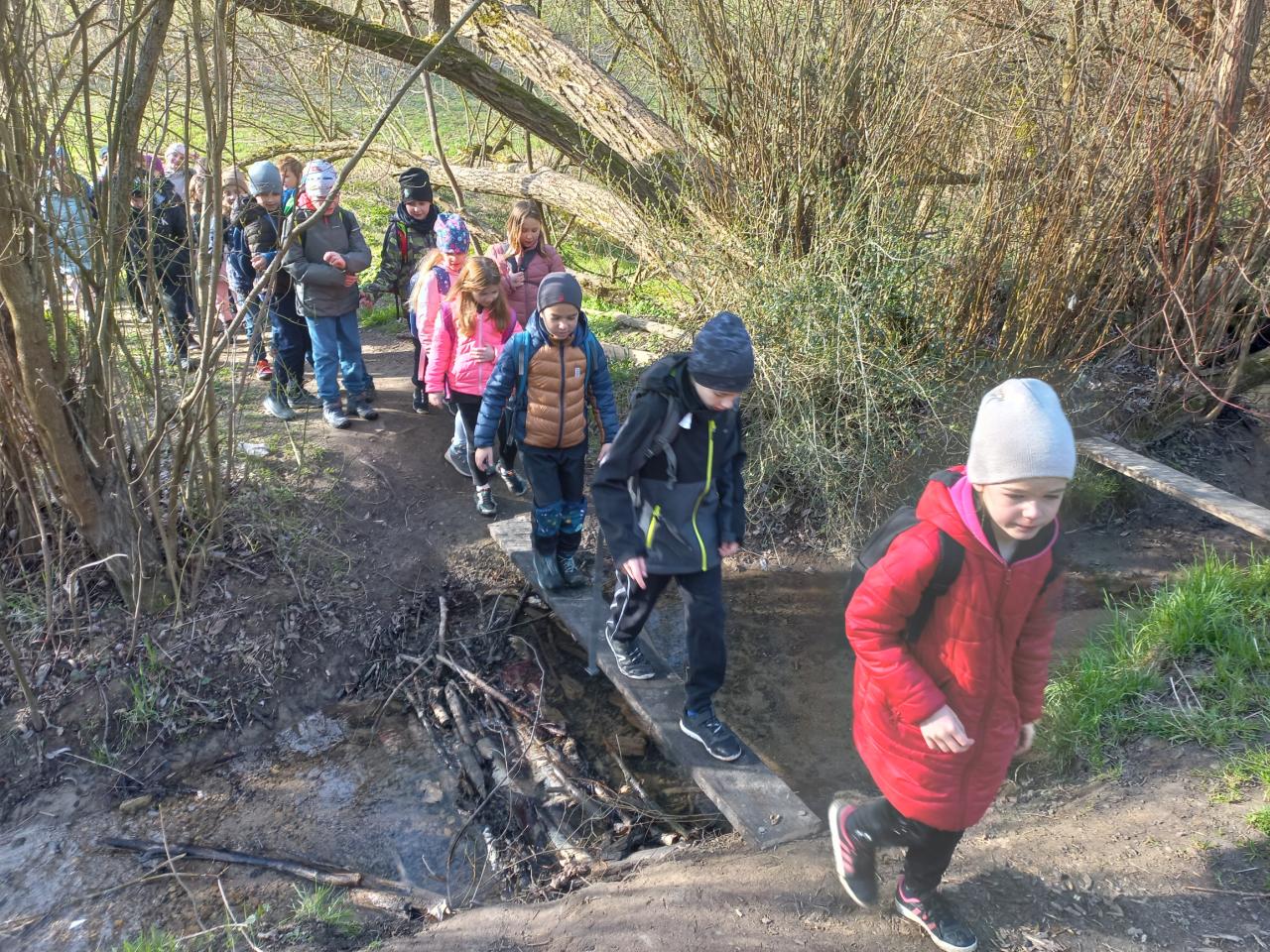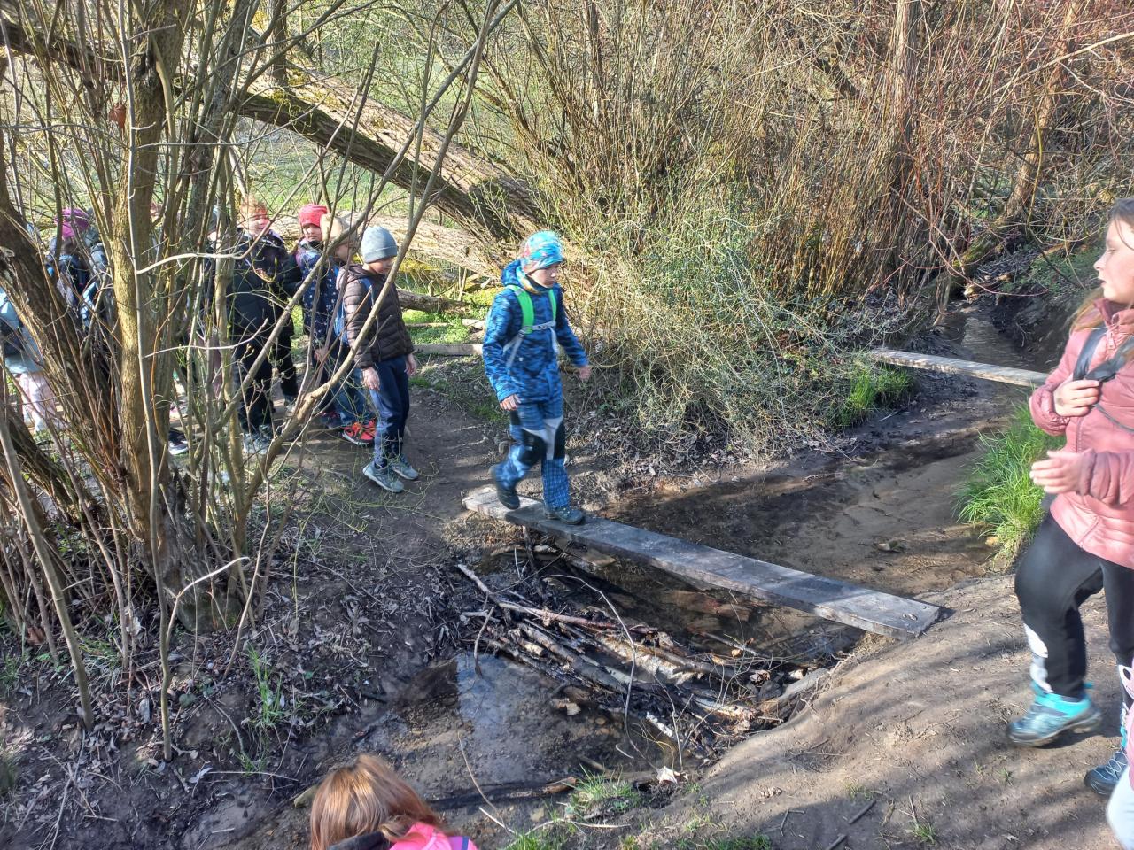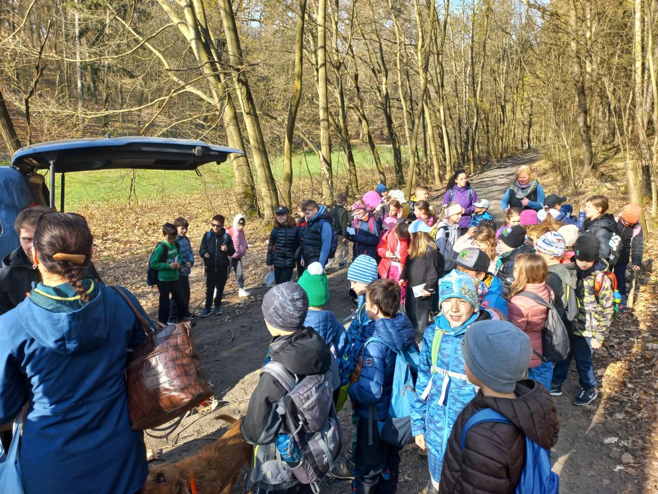 Počasí nám přálo - po chladném ránu se vyloupl nádherný, slunečný jarní den, a my jsme si mohli naplno užít svěží přírodu v přírodní rezervaci Divoká Šárka - prohlédnout si zblízka jarní květiny i rašící stromy, pohrát si s přírodninami a na louce si zahrát různé pohybové hry.