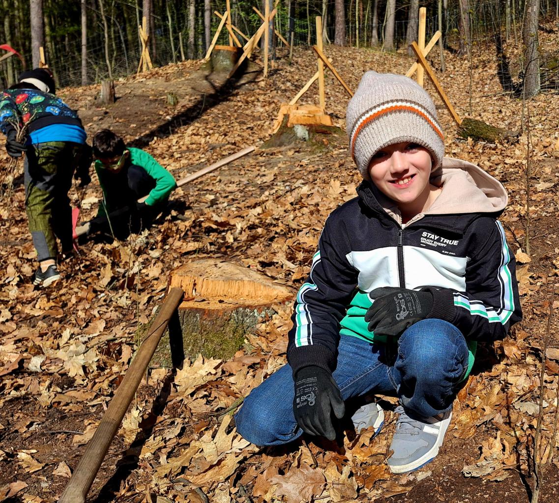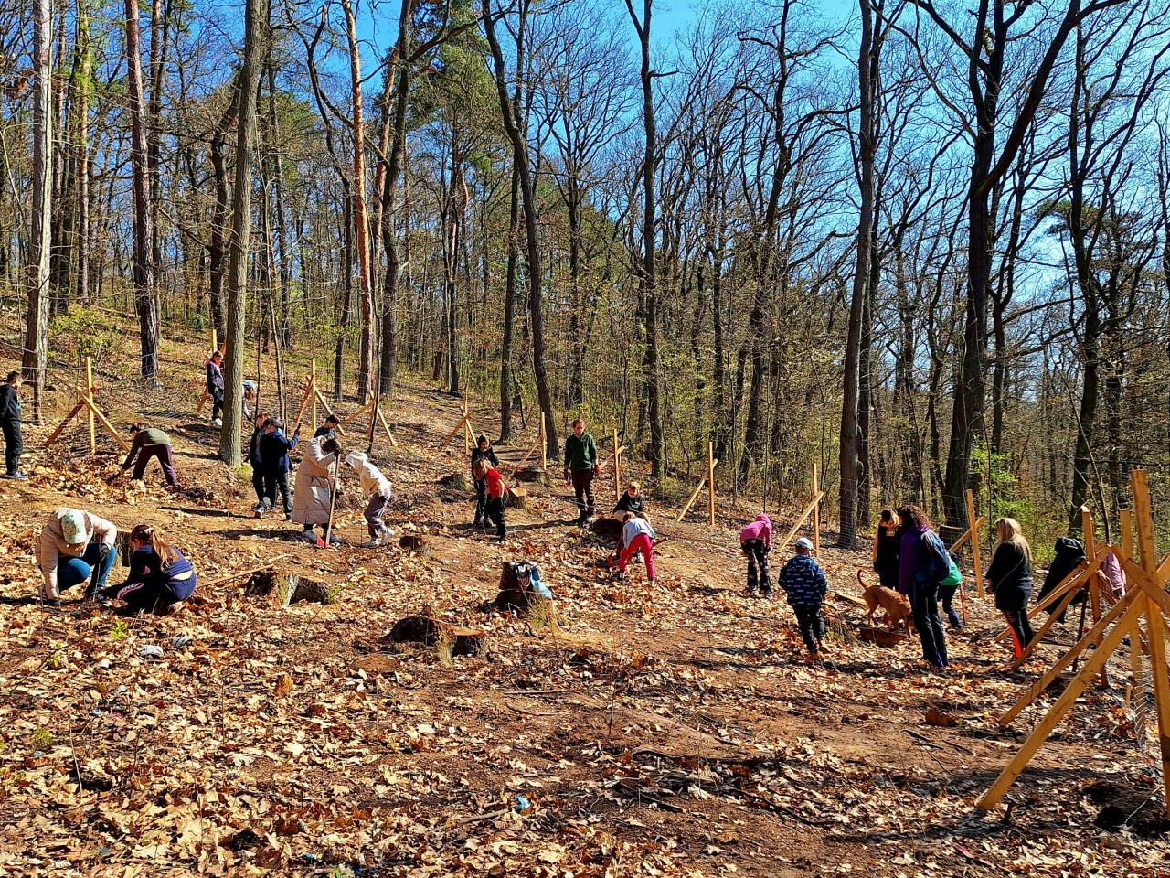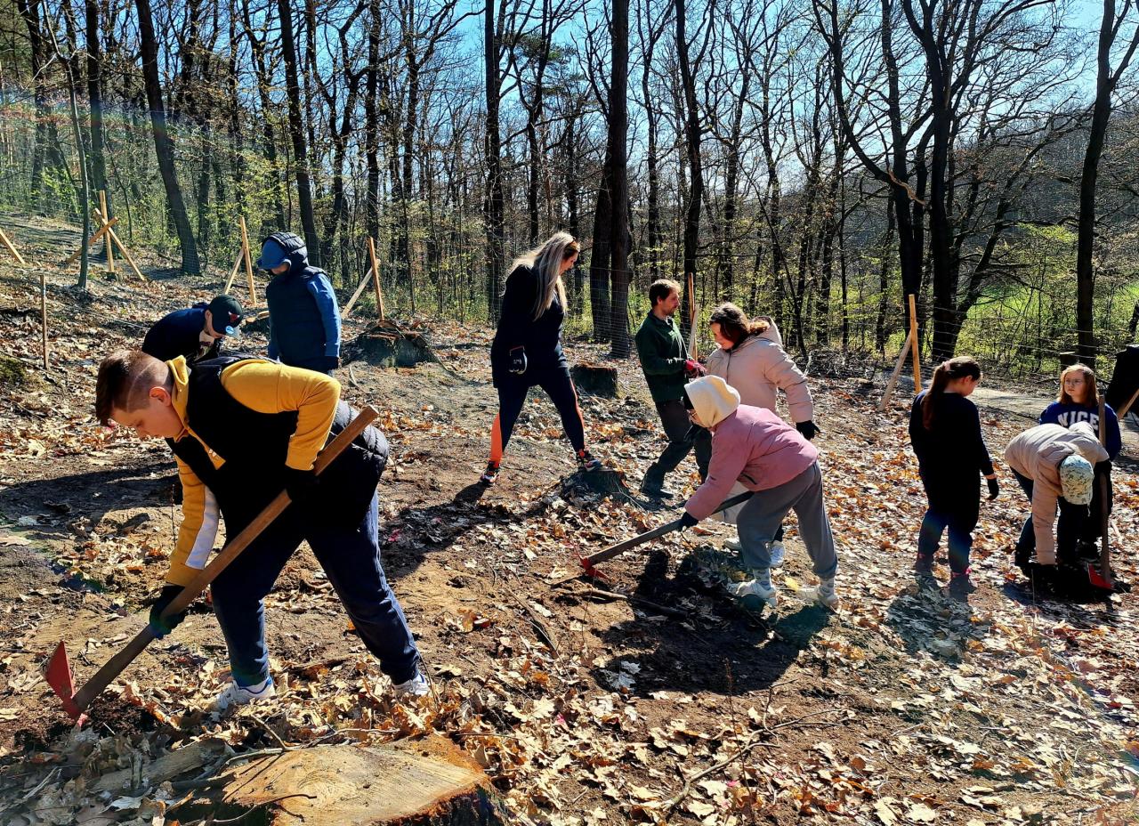 Děti spolupracovaly ve dvojicích a každý účastník si mohl pod dohledem lektora vysadit několik stromků, které na tomto místě budou růst po následujících 100 - 150 let. I když práce nebyla úplně jednoduchá, všichni nadšeně pracovali a vysloužili si lektorovu pochvalu. Po dokončení výsadby byli sázející spokojeni a příjemně unaveni.