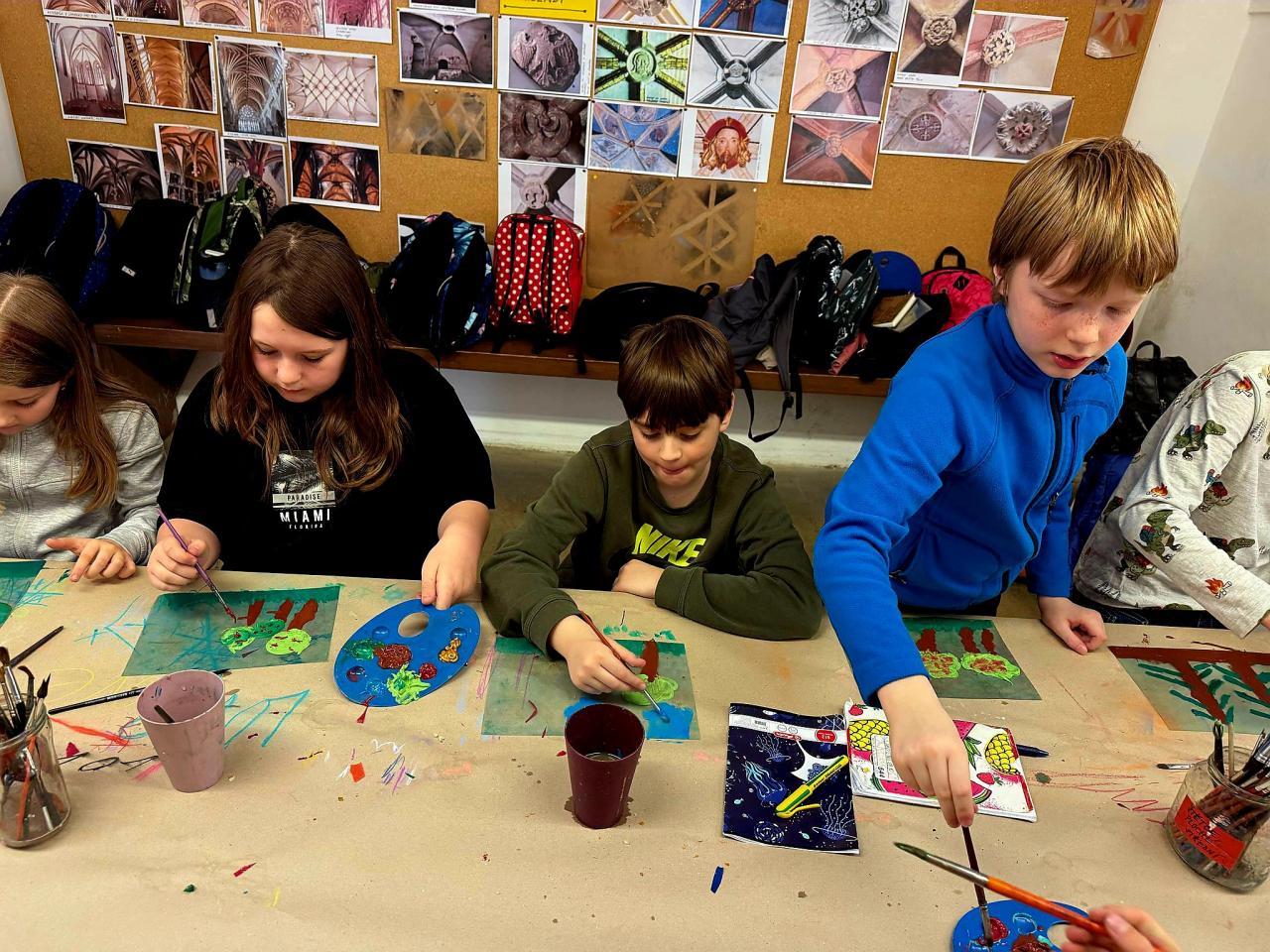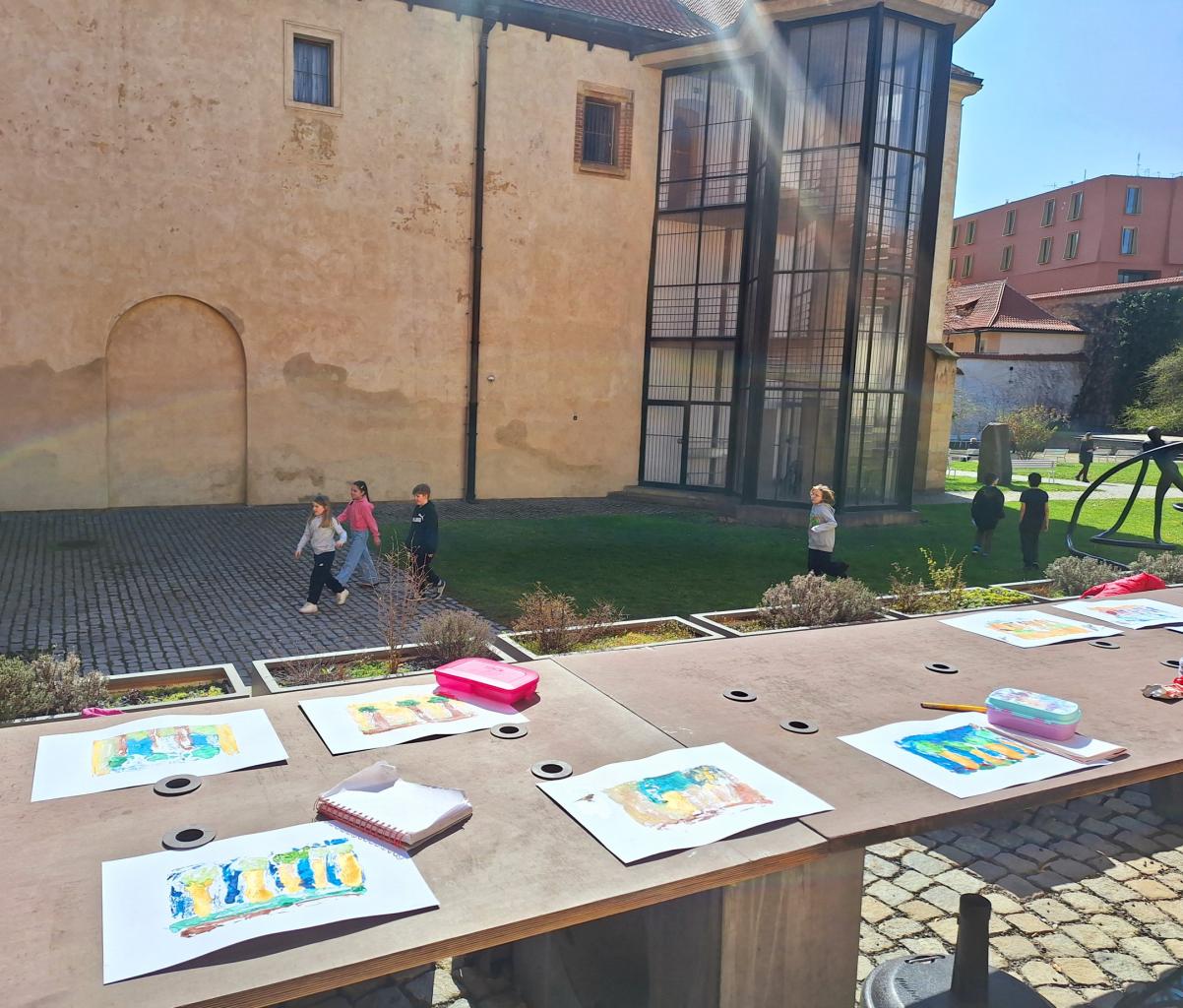 Poté, co děti vstřebaly všechny dojmy z prohlídky a výkladu (kromě jiného si prohlédly obrázky současného Jeruzaléma a Getsemanské zahrady a také si přivoněly k lahvičce s myrhou), mohly v ateliéru popustit uzdu své fantazii a vytvořit si grafickou technikou monotypu Getsemanskou zahradu v barvách, které si samy zvolily.
