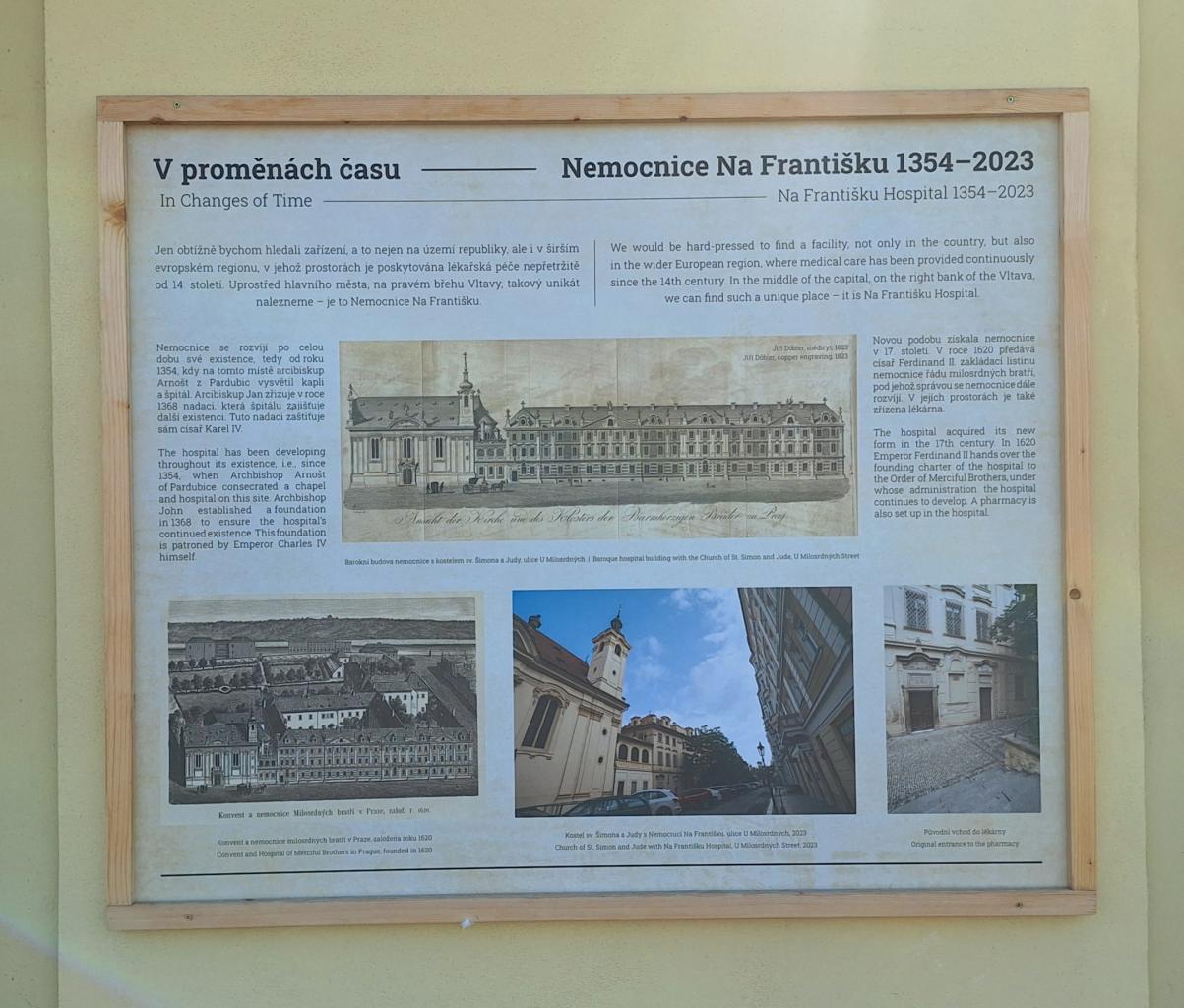 Cestou zpět do školy jsme si prohlédly panelovou fotovýstavu Nemocnice Na Františku - unikátního zařízení, kde je lékařská péče poskytována nepřetržitě od 14. století.