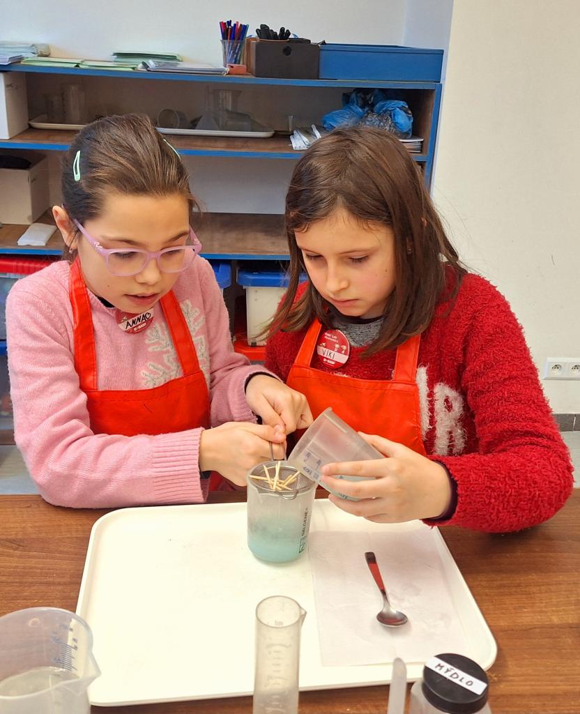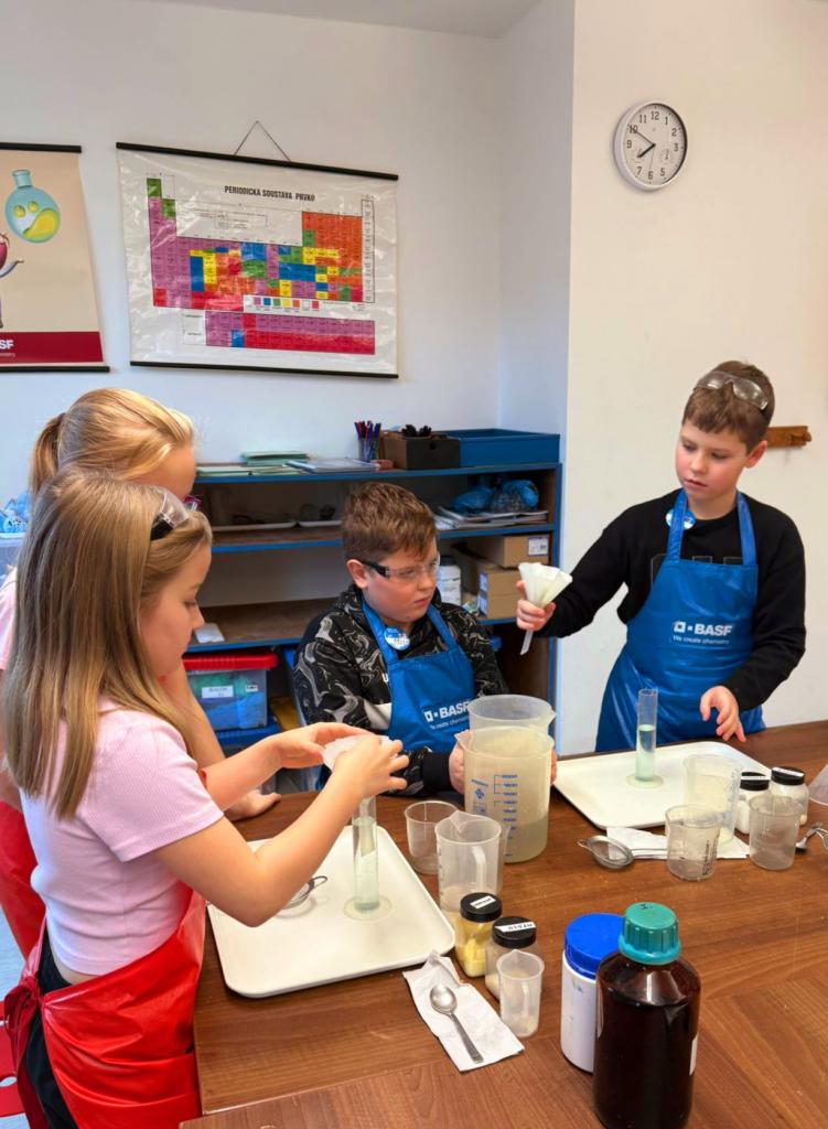 vytvořily vlastní znečištěnou vodu (písek, mýdlo, dřevo) a následně z ní odstranily různými způsoby pevné i rozpuštěné částice. Během pokusů si zopakovaly také mnohé znalosti z matematiky, na řadu přišla i angličtina....