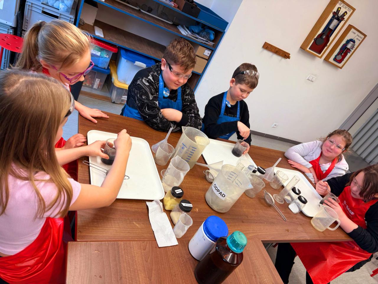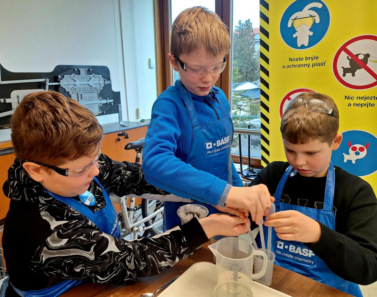 Zkušení lektoři si děti rozdělili do dvou skupin a výzkum na téma „Voda miluje chemii” mohl začít....