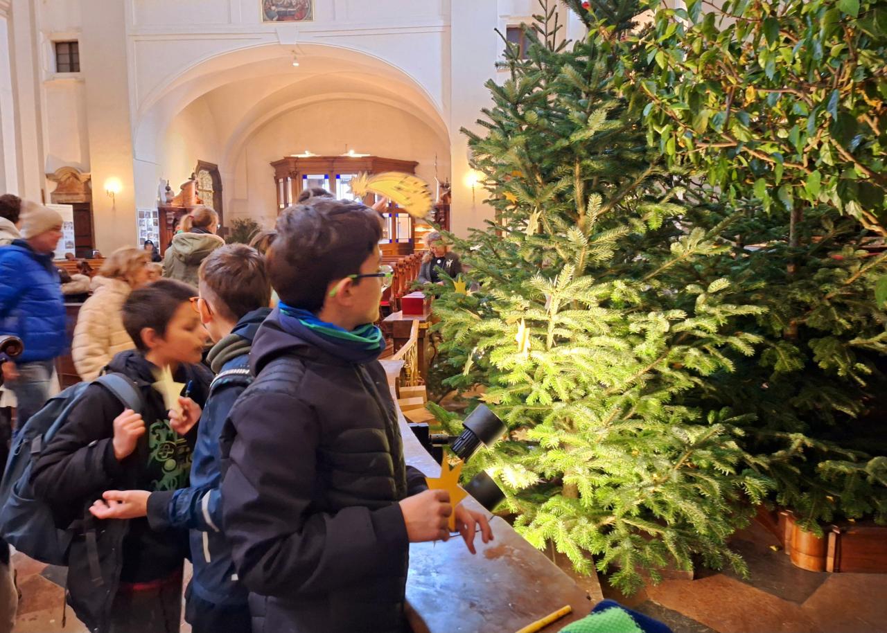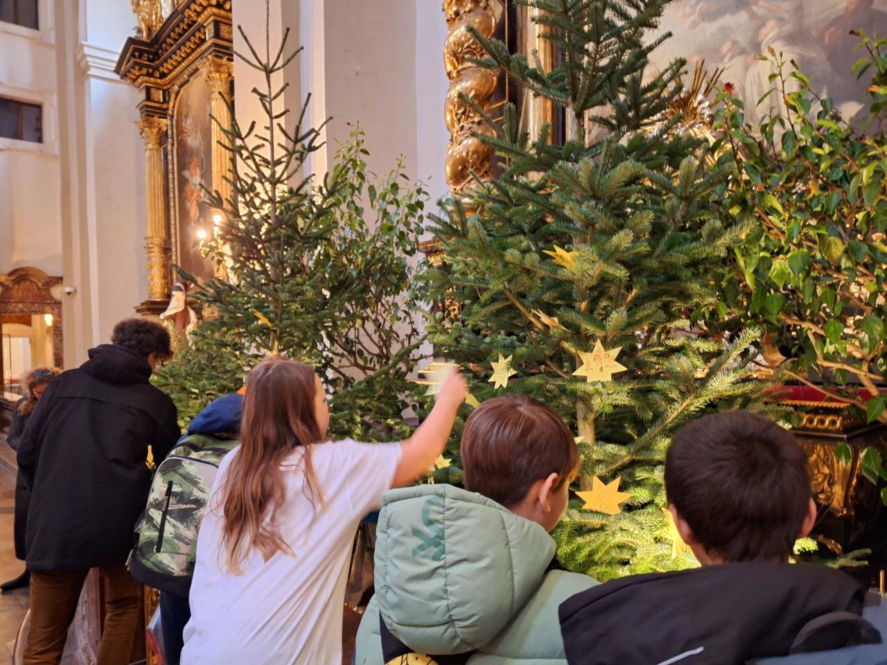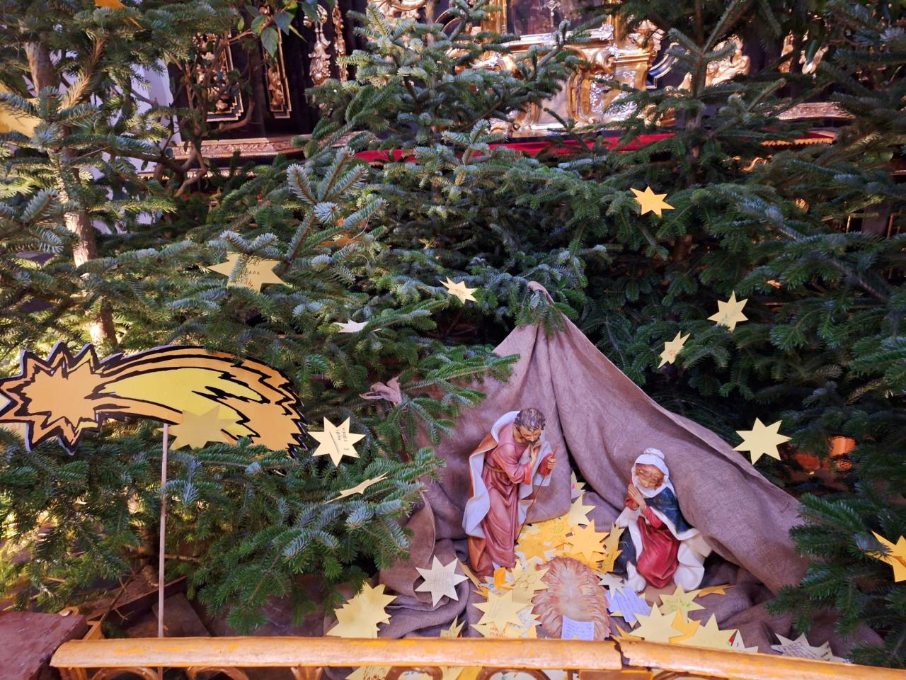 Poté jsme se propletli uličkami Malé Strany a prohlédli si v barokním kostele Panny Marie vítězné slavné Pražské Jezulátko a v přilehlém muzeu betlémů jejich podoby z různých zemí světa. Znovu jsme si připomněli biblický vánoční příběh a na hvězdy k betlému v kostele jsme napsali přání pro své rodiny.