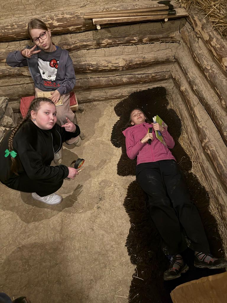Na galerii se pak děti seznámily s archeologickými nálezy (hroby, kostry, zbraně, šperky keramika), otestovaly své znalosti v zábavných kvízech a vyzkoušely si práci archeologů. Aktuální učivo vlastivědy si několik hodin vyzkoušely na vlastní kůži...:-)