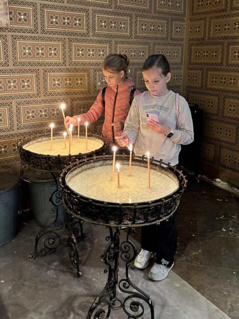 Závěrečnou zastávkou naší procházky byla bazilika sv. Petra a Pavla. Zvenčí nás ohromila svou impozantní architekturou a uvnitř nás uchvátila bohatou a detailní výzdobou. Na závěr návštěvy si někteří z nás pro radost zapálili svíčku a sledovali mihotavý plamínek.
