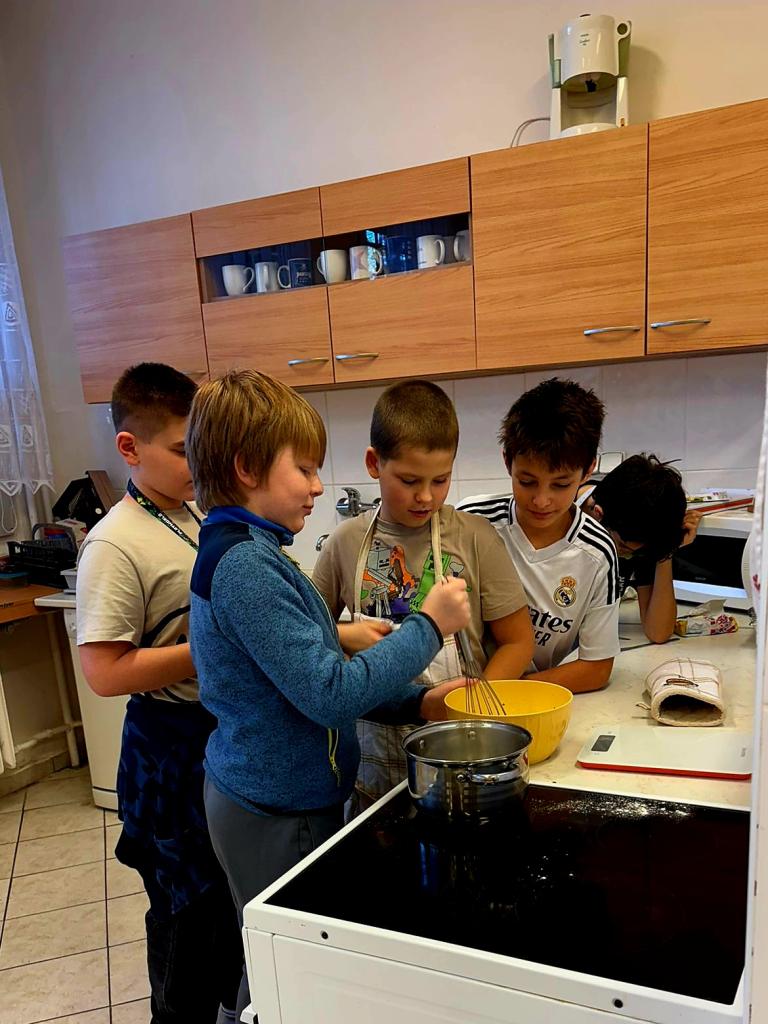 Pod vedením a dohledem zkušené paní asistentky Dany Zimové se děti z 5. tříd stále zlepšují a vytvářejí úžasné slané i sladké dobroty. Stihnou si užít i spoustu zábavy!