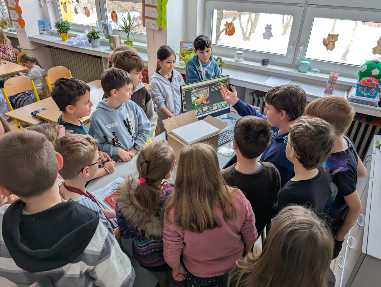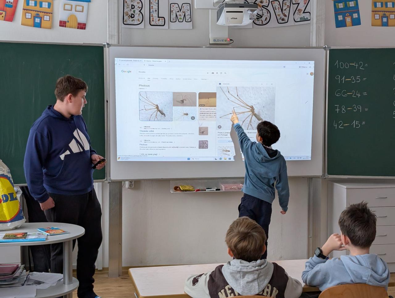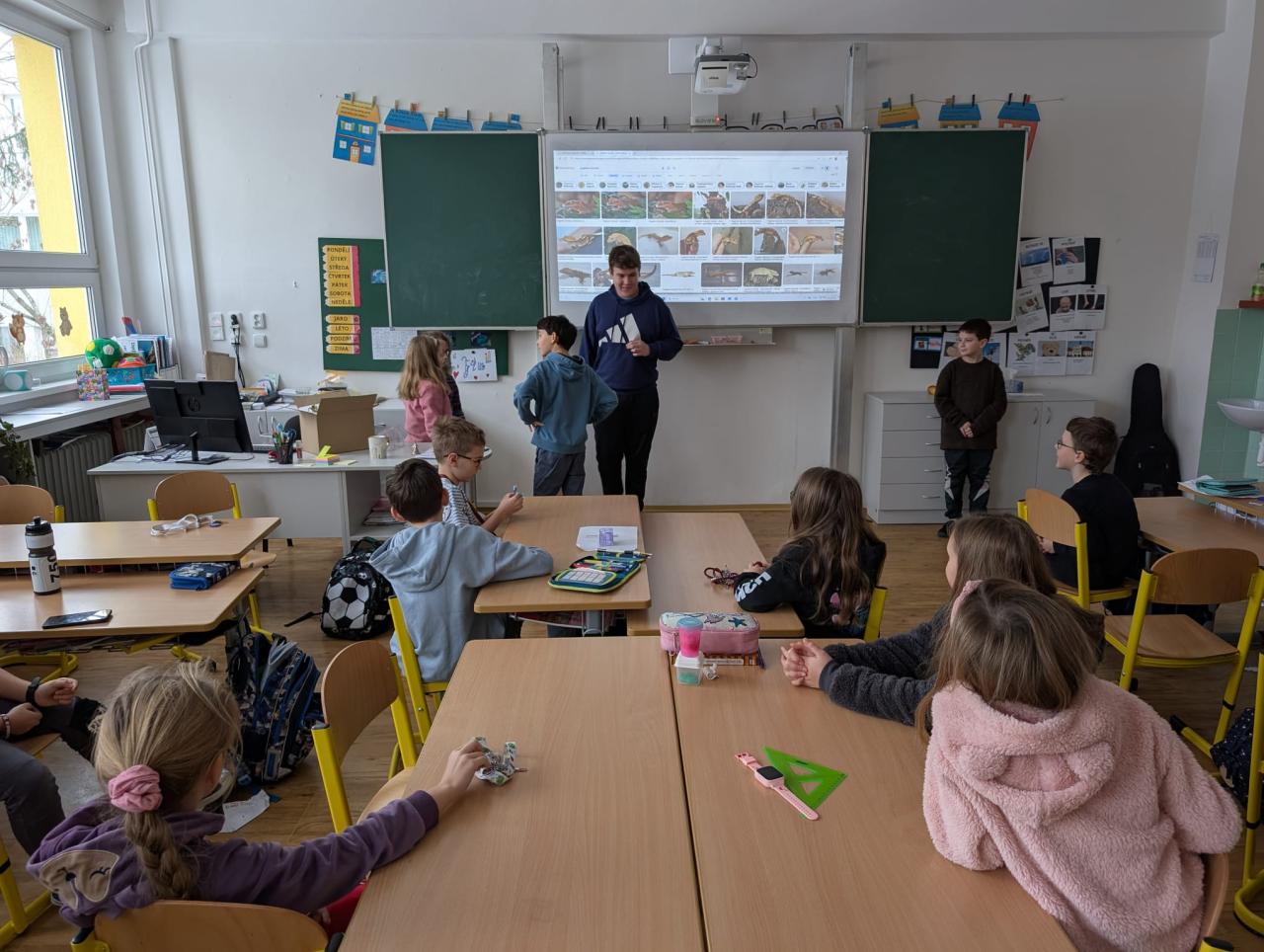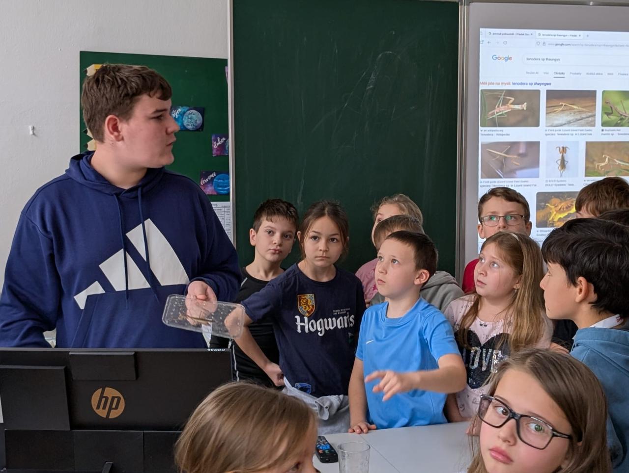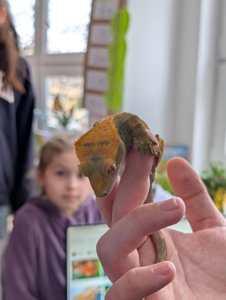 Ve třídě 3.A nás navštívil kamarád Dominik a vyprávěl nám o drobném zvířectvu. Přinesl s sebou živé exempláře strašilky, pagekona řasnatého, kudlanku, největší kobylku a cvrčky.