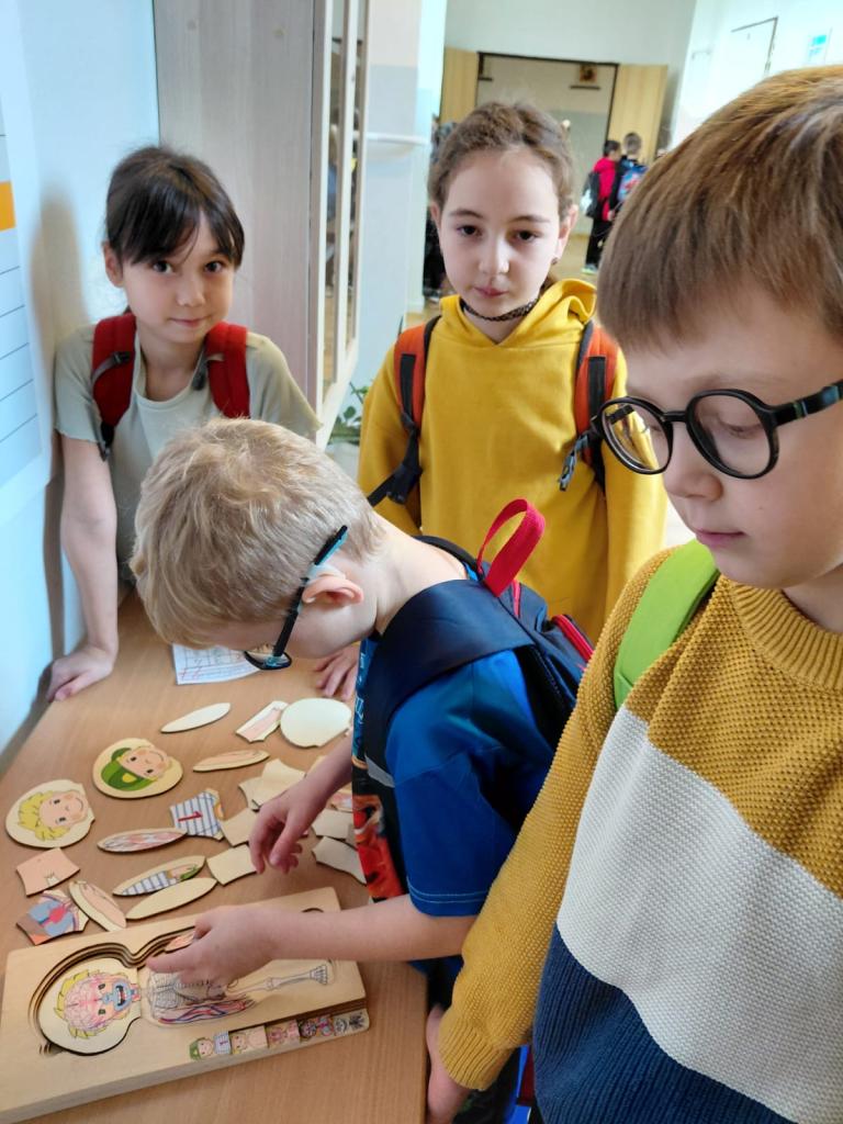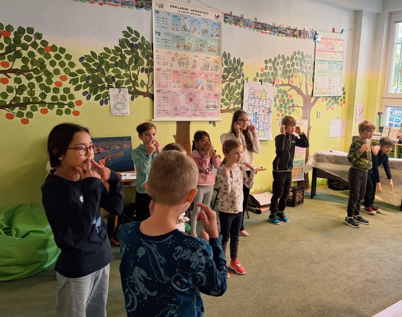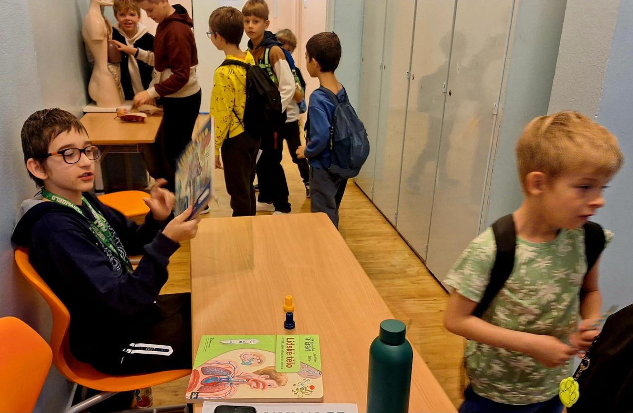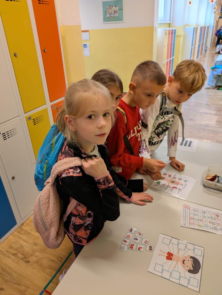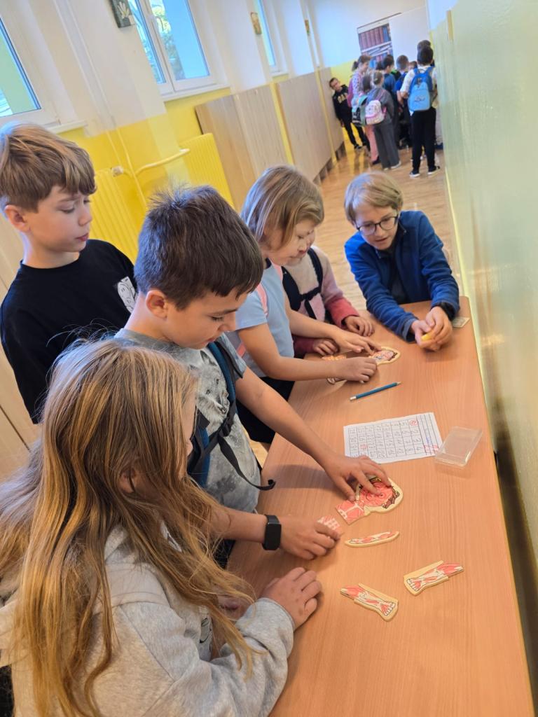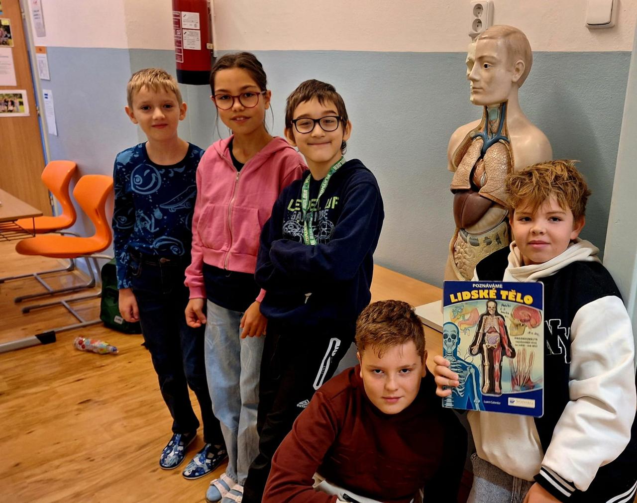 Projektový den na celé naší škole si všichni žáci prvního stupně krásně užili v úterý 21. 10. 2025. Ve věkově smíšených skupinách plnili po celé škole úkoly na téma LIDSKÉ TĚLO. Svou roli zvládli i žáci 5. ročníků, kteří na jednotlivých stanovištích pomáhali se zadáním a kontrolou úkolů.