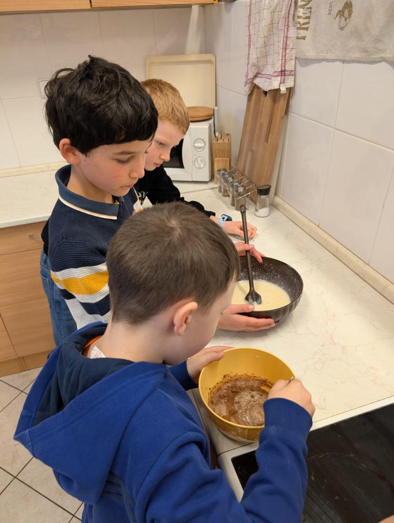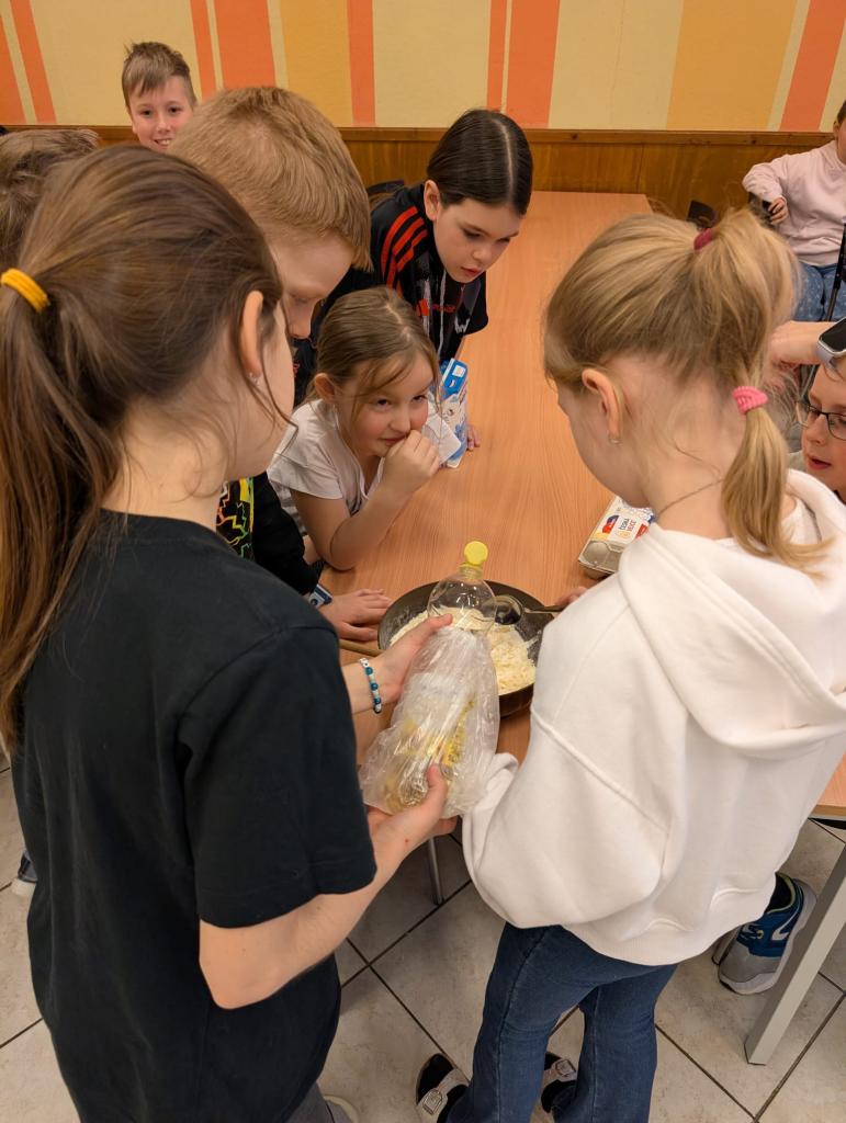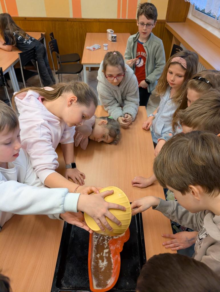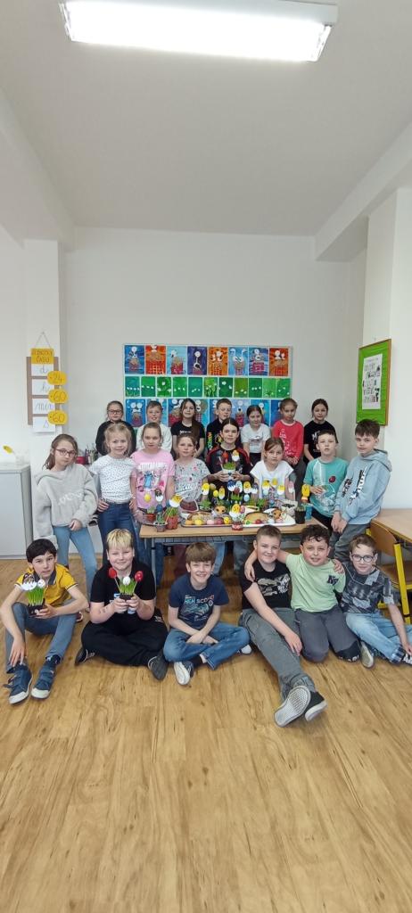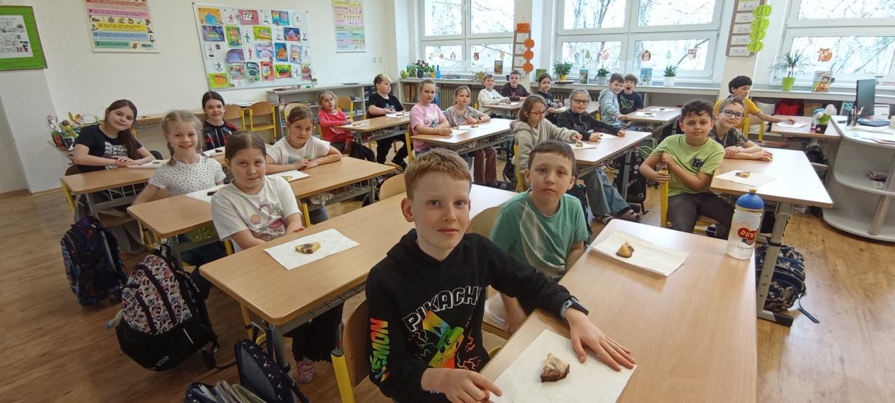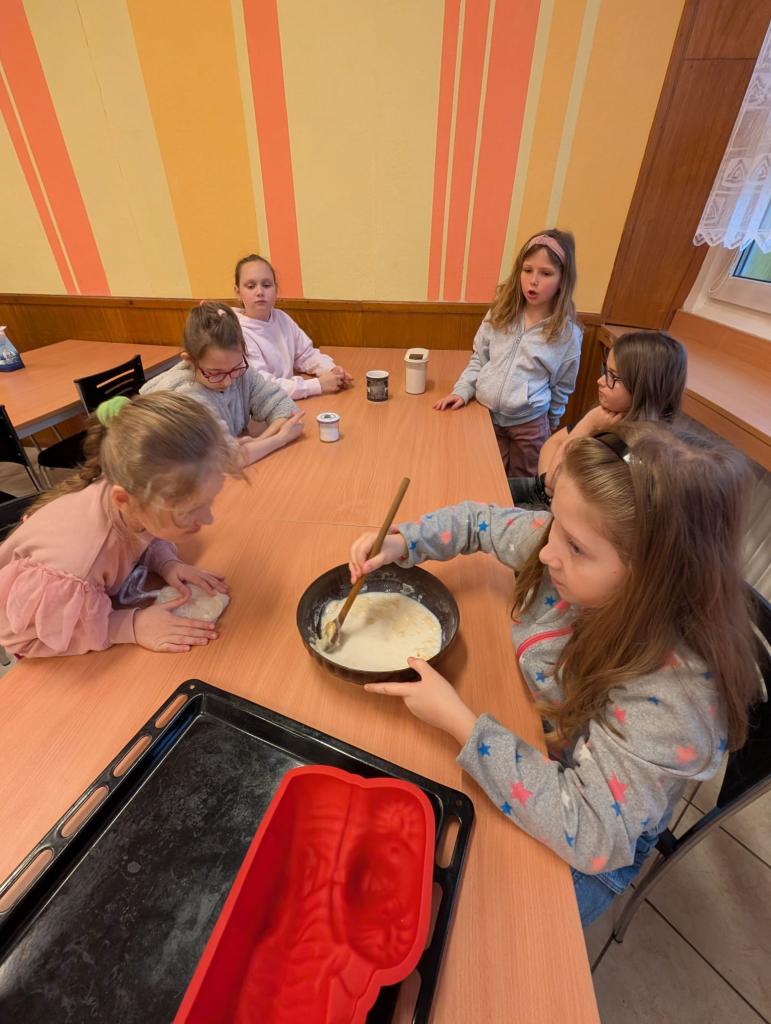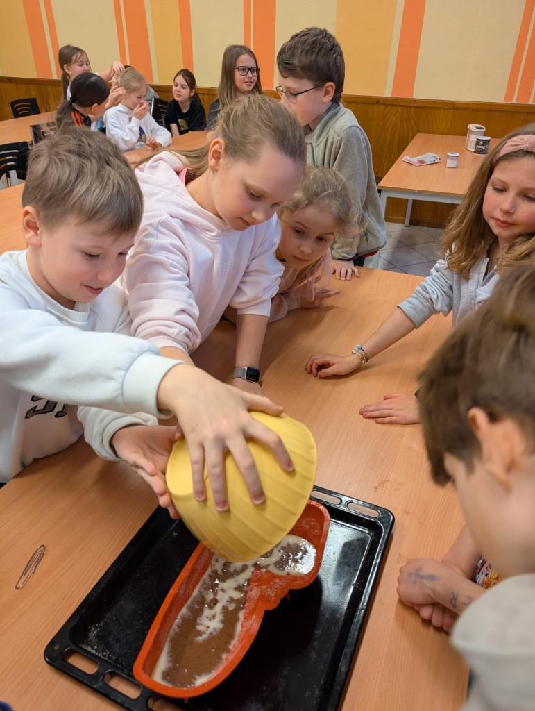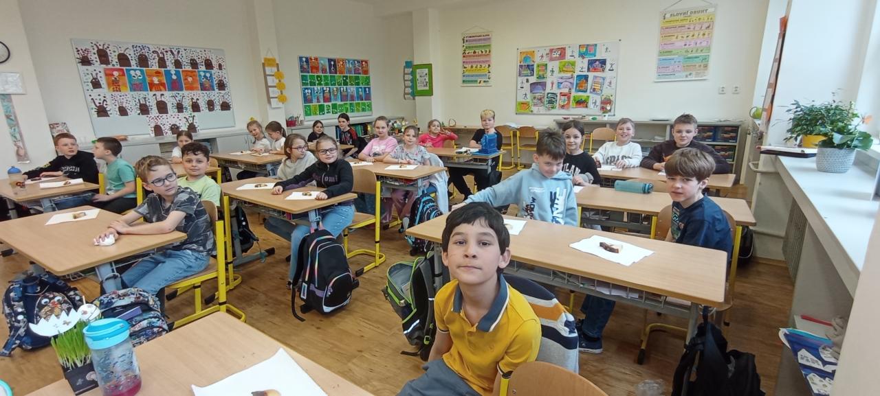 Se třídou 3. A jsme se rozhodli upéct velikonočního beránka. Nejprve jsme společně připravili těsto a naplnili formu. Během čekání, než se beránek upeče, jsme si povídali o velikonočních zvycích.