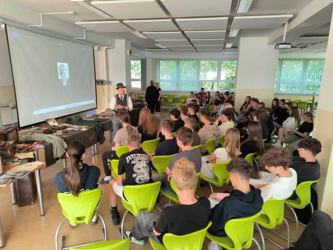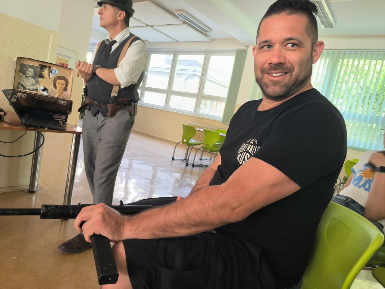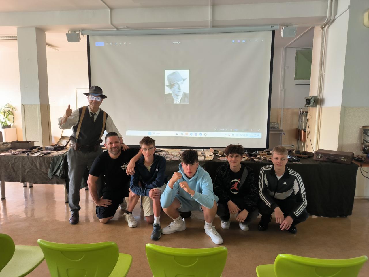 Symbolicky v den 83. výročí vyhlazení obce Lidice nacisty, jako odvetu za atentát na Heydricha jsme pozvali uznávaného odborníka na zbraně, taktiku a moderní historii plk. mgr. Pavla Černého, který nás během dvou hodin dostal, díky replikám zbraní, osobních průkazů, oblečení, radiostanic a dalších komponentů do období počátku protektorátu, kdy gestapu dělalo těžkou hlavu trio odbojářů, známé jako Tři králové a kdy se po Praze pohybovala dvojice československých vojáků s jasným úkolem. Zlikvidovat krvavého Reichsprotektora a šéfa gestapa a SD Reinharda Heydricha. Přednáška byla provázena mnoha videodokumenty a možnostmi si repliky zbraní (zvláště pak velmi vzácného samopalu sten gun) "osahat". Přesně takto si představuji přednášky pro školy! Uznávaný odborník, který umí nadchnout, pracovat s dětmi a moderní technikou a který má zároveň sebou desítky předmětů na ukázku a jemuž nevadí, když si je děti xkrát za sebou vyzkouší a potěžkají. Chápe totiž, že jen tak se studentům vryjí do paměti jména jako plk. Balabán, plk. Mašín, kpt. Morávek či rotmistři Jozef Gabčík a Jan Kubiš.