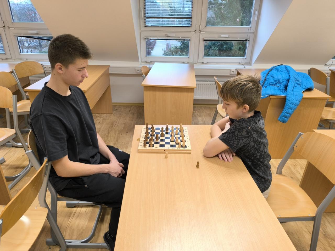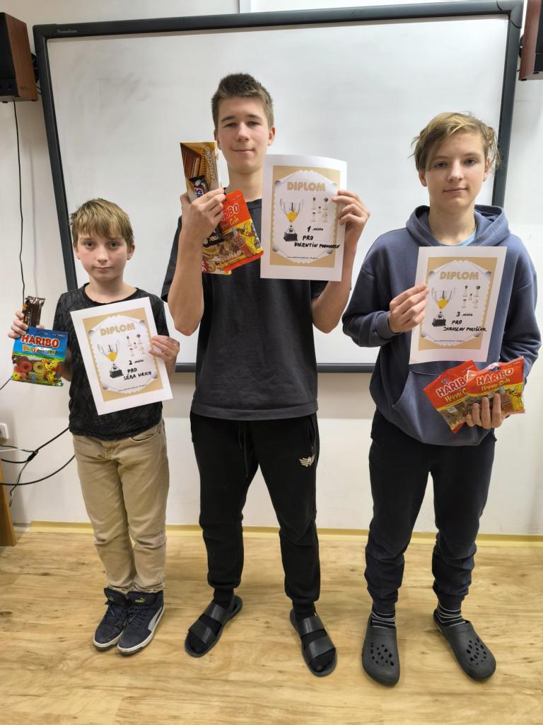 Předvánočního a zároveň prvního šachového turnaje naší školy se zúčastnilo celkem pět hráčů. Na 1. místě skončil Valentin Ponomarev 8.C, 2. místo obsadil Sebastian Urich ze 6.B a na 3. místě se umístil Jaroslav Poliščuk 7.C.