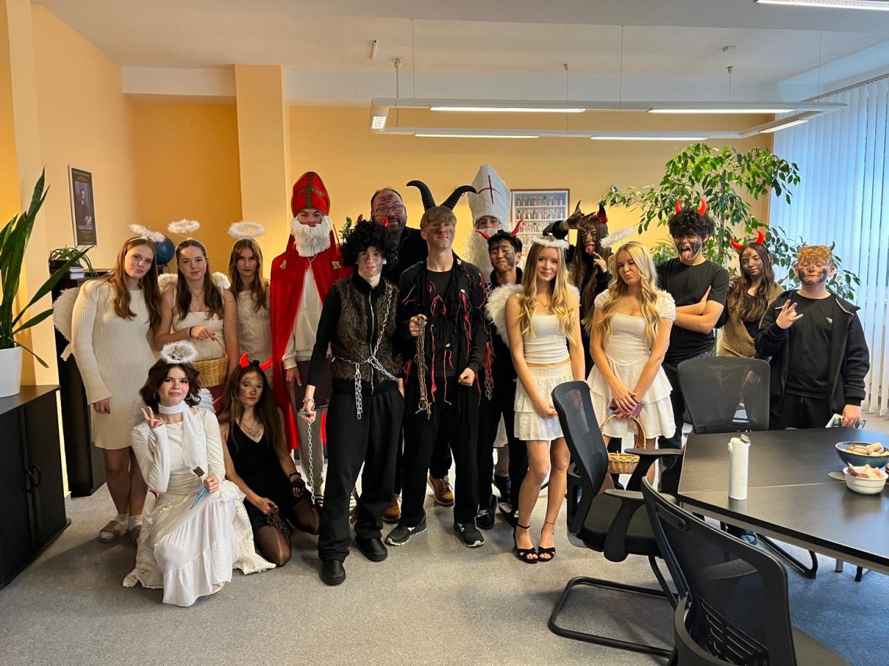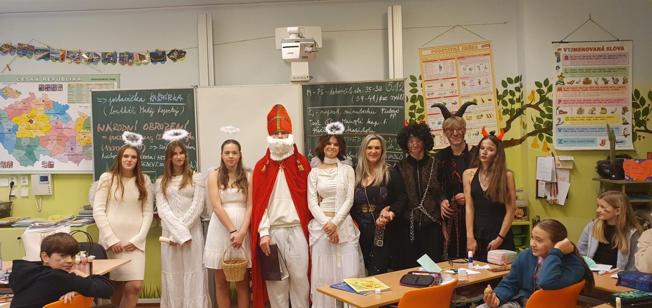 Dne 5.12. se k nám do školy přišli podívat čerti, andělé a Mikulášové, aby si promluvili s nezbednými ratolestmi ale také pochválili hodné žáky prvního stupně.