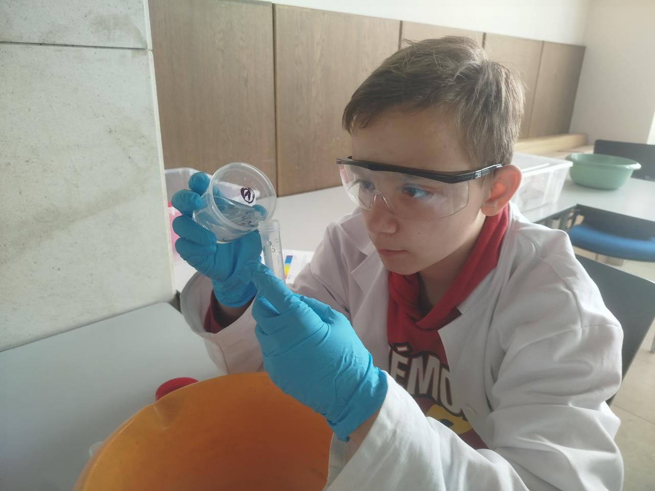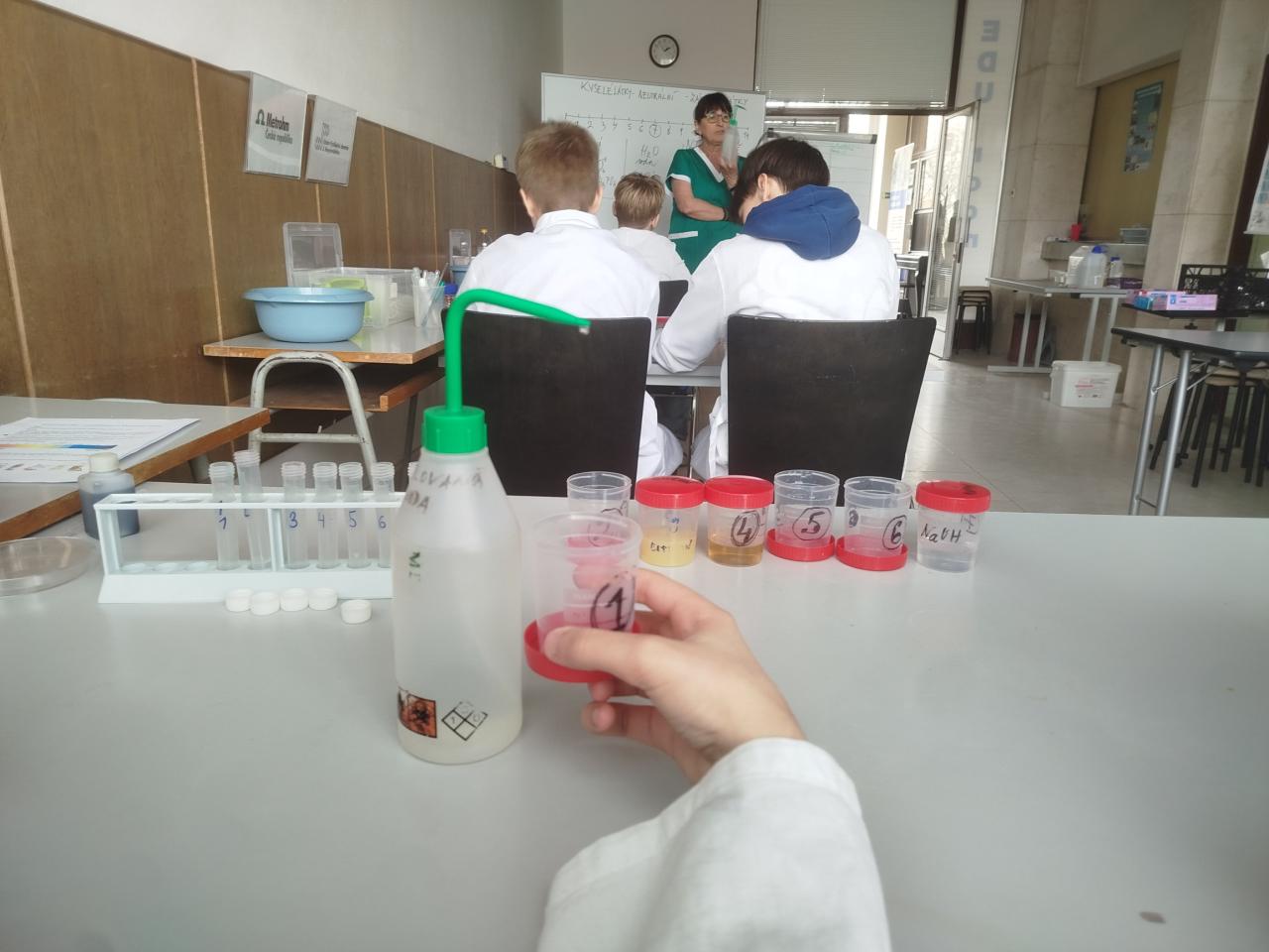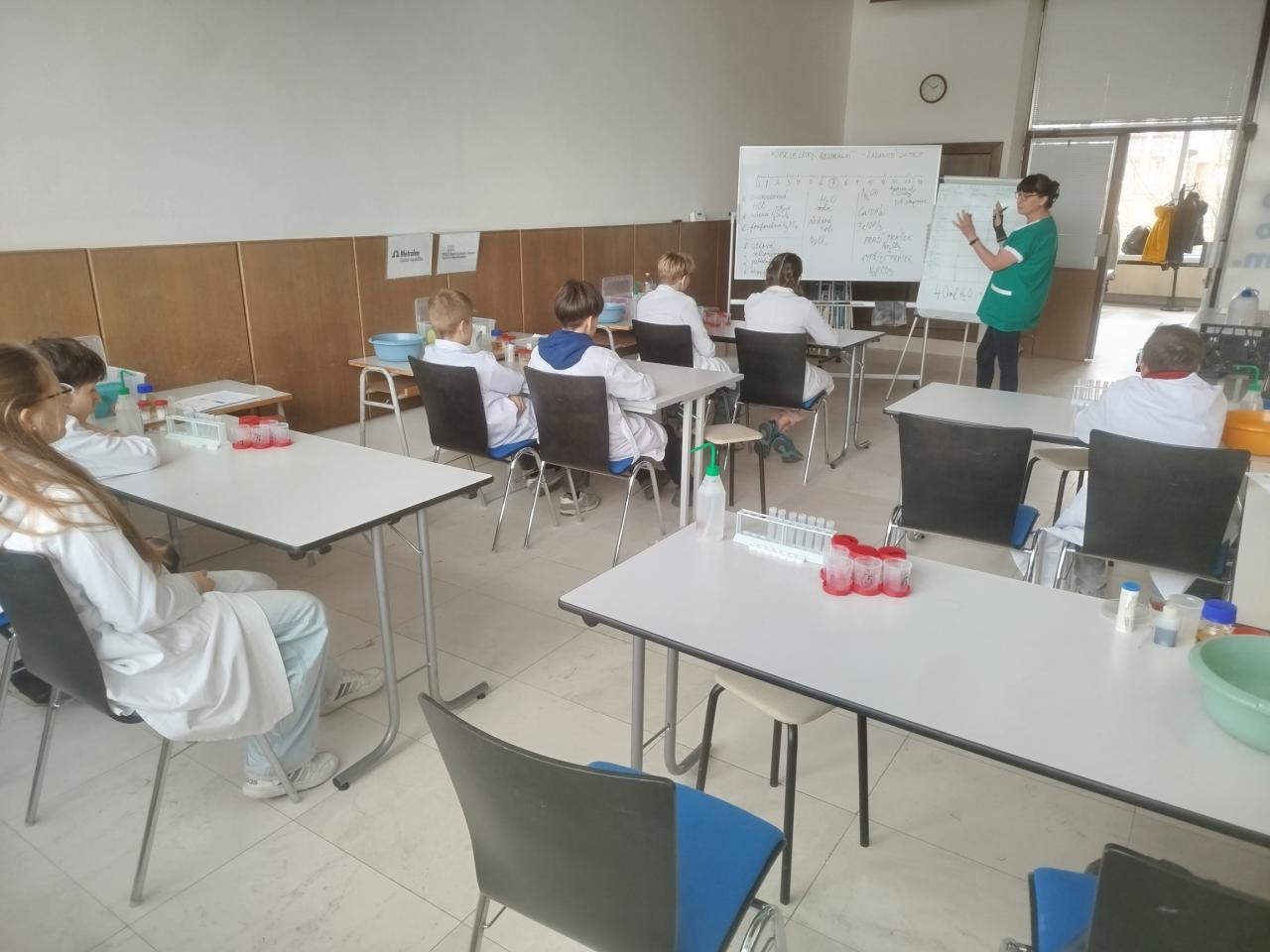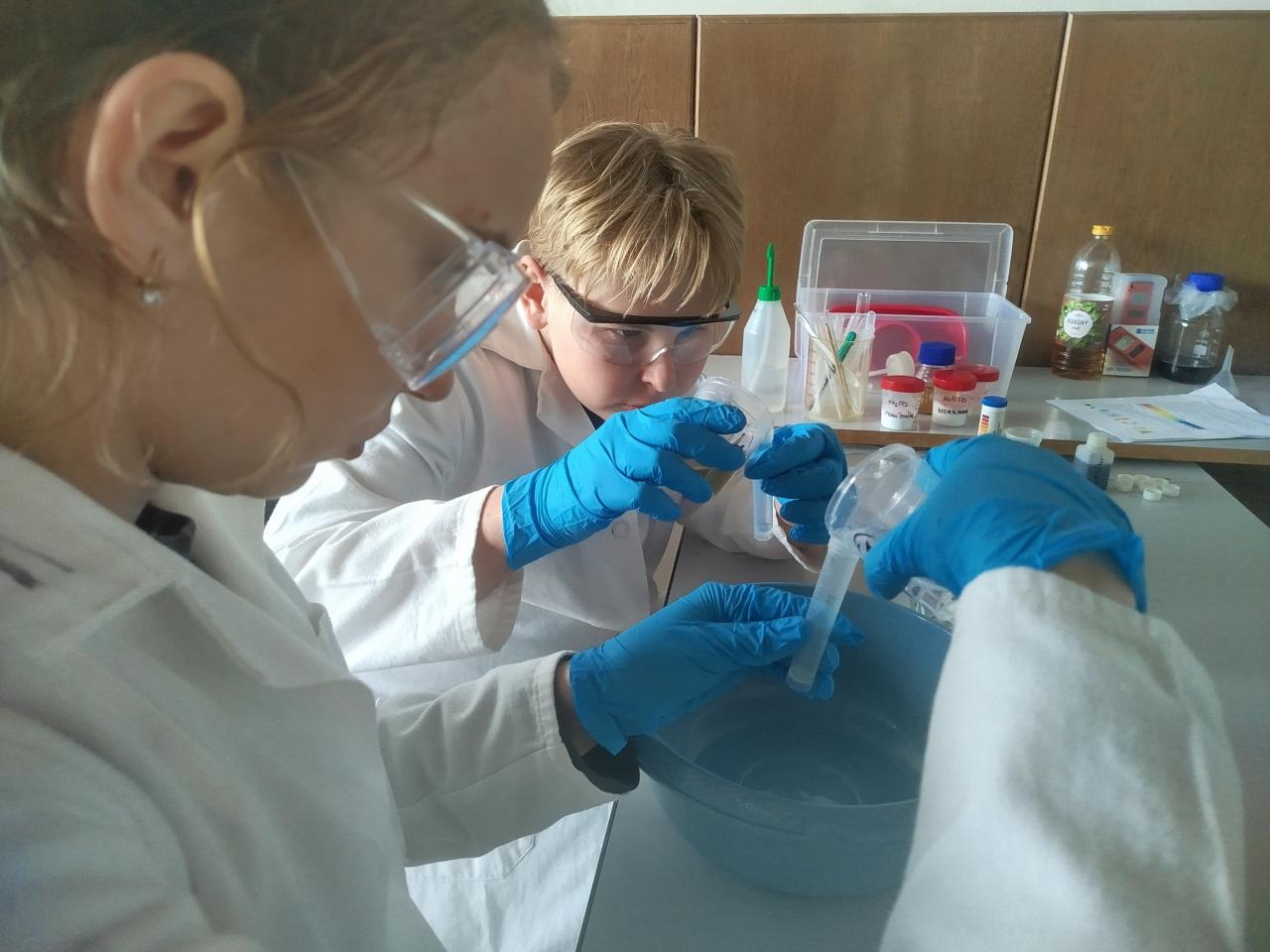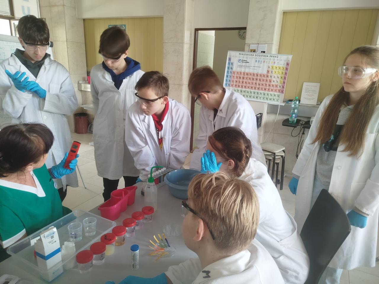 Chemické pokusy si žáci mohli vyzkoušet i na Ústavu fyzikální chemie J. Heyrovského v rámci workshopu "Chemie není nuda".