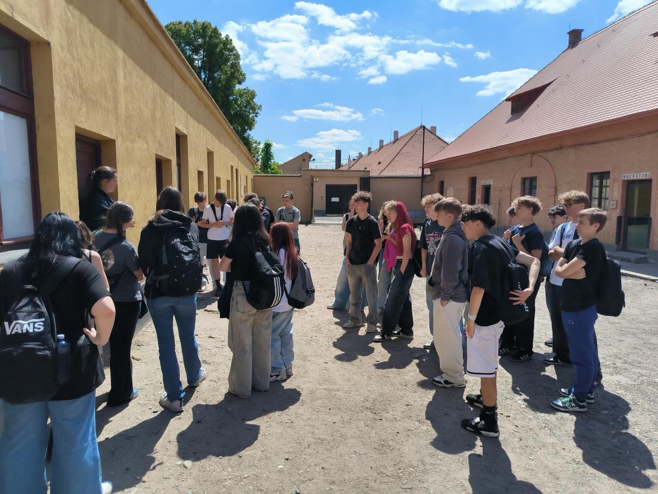 Dne 12.5. se naše 9. ročníky zúčastnily celodenní exkurze do Terezína, kde jsme navštívili muzeum ghetta a věznici gestapa Malá pevnost. V obou případech se studentům věnovali fundovaní průvodci, kteří věrně popsali hrůzy, jakými si museli projít lidé v období druhé světové války. Deváťáci si po příjezdu prošli 2 km trasu, kterou s těžkými kufry a často v příšerném počasí a špatném oblečení absolvovaly transporty do ghetta z vlakového nádraží v Bohušovicích nad Ohří. Po prohlídce nelidského ubytování židovských rodin v ghettu a po zážitku z cel gestapa v Malé pevnosti, spojené s výkladem o naprosto bestiálním chování stráží SS si mnoho z nás uvědomilo, v jak poklidné době dnes žijeme a také to, že naše občasné stížnosti na nedokonalosti demokracie nejsou nic proti tomu, co museli zažívat naši předkové v období nacistické okupace.