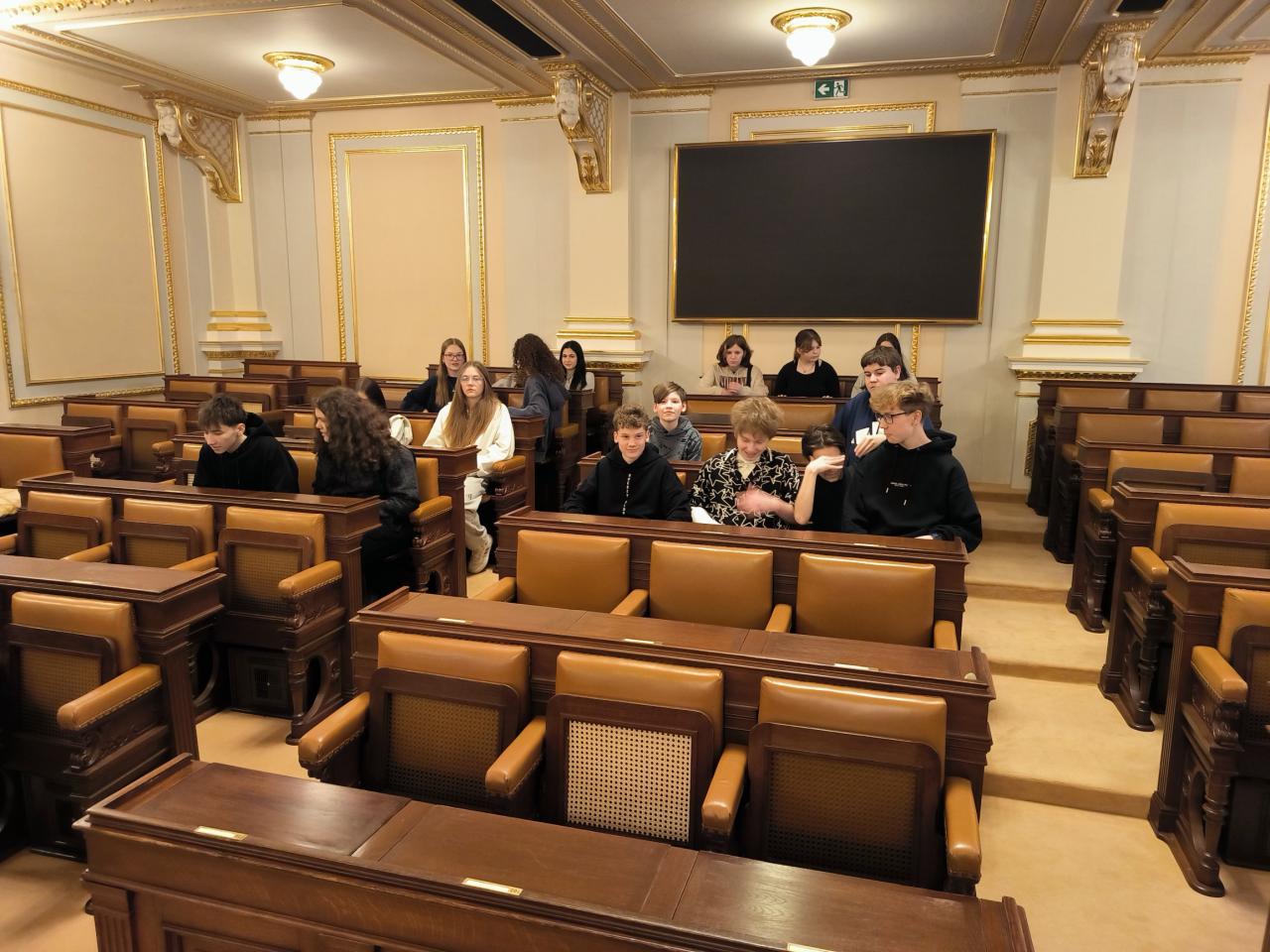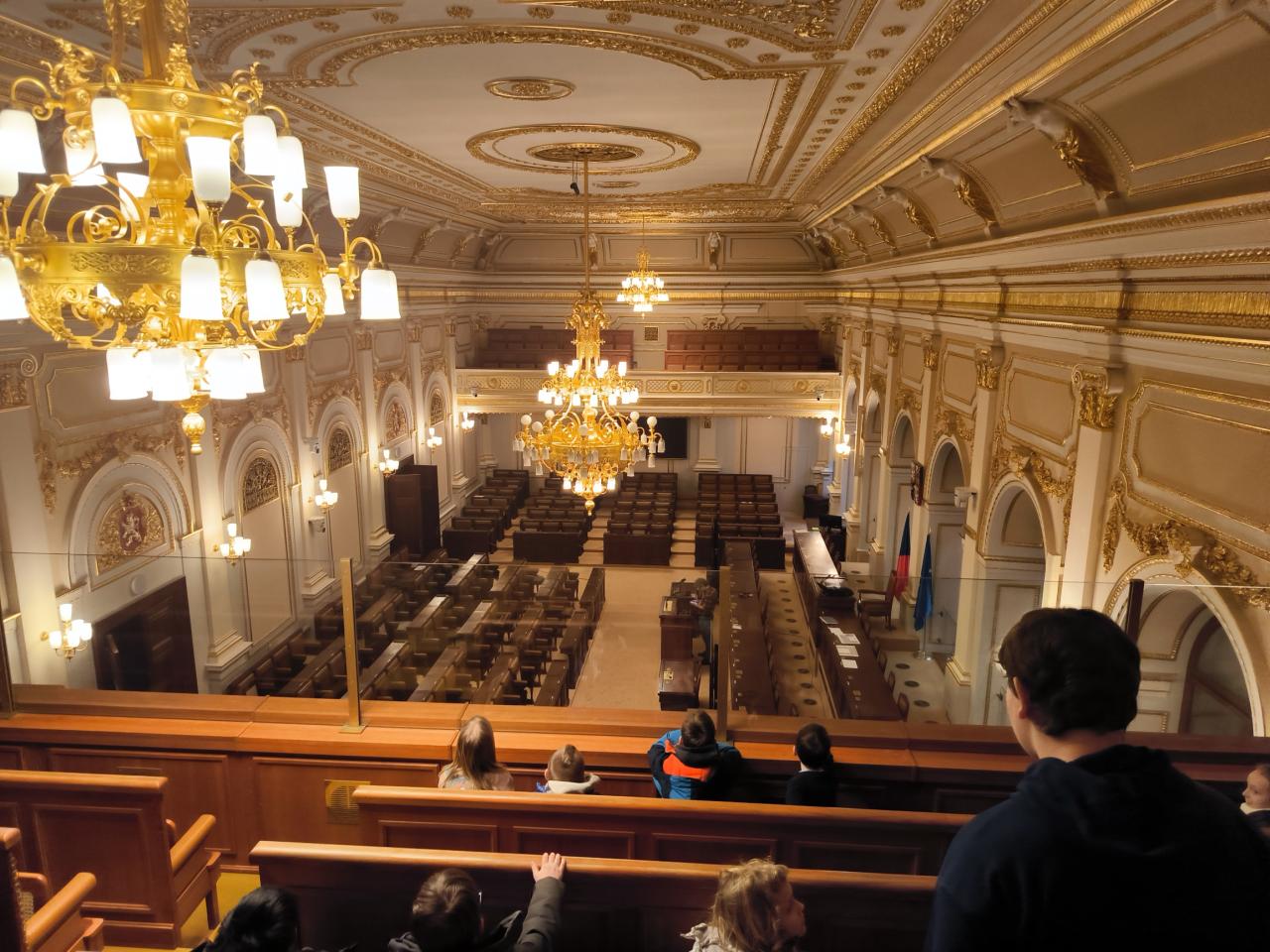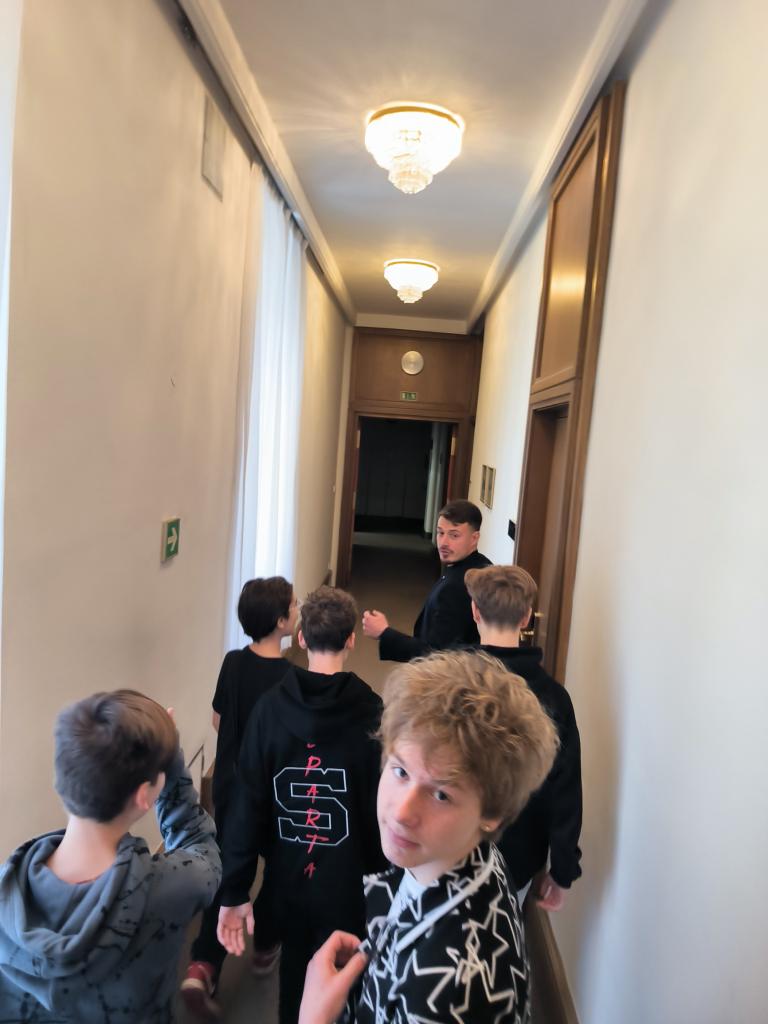 Dnes měla 8.B velké privilegium. Po Poslanecké sněmovně ji prováděl poslanec pan Samuel Volpe. Díky panu Volpemu jsme viděli jednací sál, sál pro tiskové konference, terasu s výhledem na hrad a dostali jsme se i do prostor, kam se běžný smrtelník nedostane (o bufet se bohužel nejednalo)...