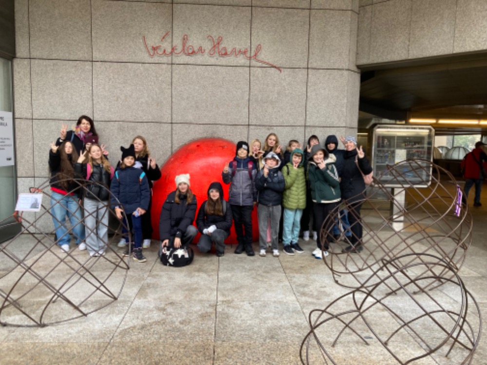 Dnes jsme se v rámci exkurzního dne vydali do zakázané knihovny LIBRI PROHIBITI, kde jsme se dozvěděli, co to je samizdatová literatura, mohli jsme si zkusil psát na psacím stroji ze 30. let 20. století, viděli jsme a mohli jsme si prohlídnout ojedinělé knihy, které nemají jiný výtisk, knihu Pána Prstenů z roku 1980, a dokonce jsme v rukou měli i podepsanou knihu Václava Havla. Dále jsme pokračovali na Národní třídu, kde jsme si připomněli den 17.11.1989, naše putování jsme ukončili na náměstí Václava Havla.