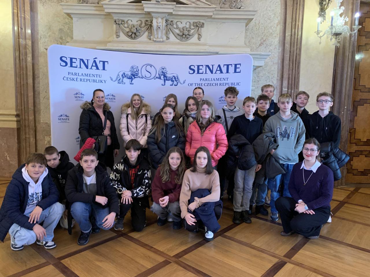 8.A navštívila Senát České republiky a strávila zde dopoledne. Žáci si prohlédli historické i reprezentační prostory, kde pracují senátoři. Dozvěděli se také zajímavosti o fungování Senátu a jeho významu pro naši zemi.