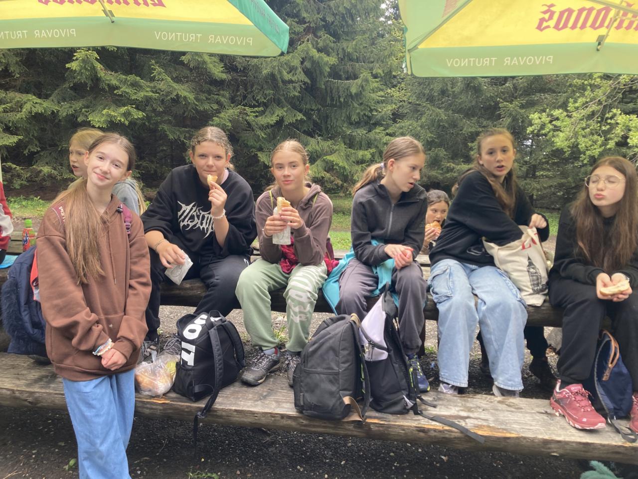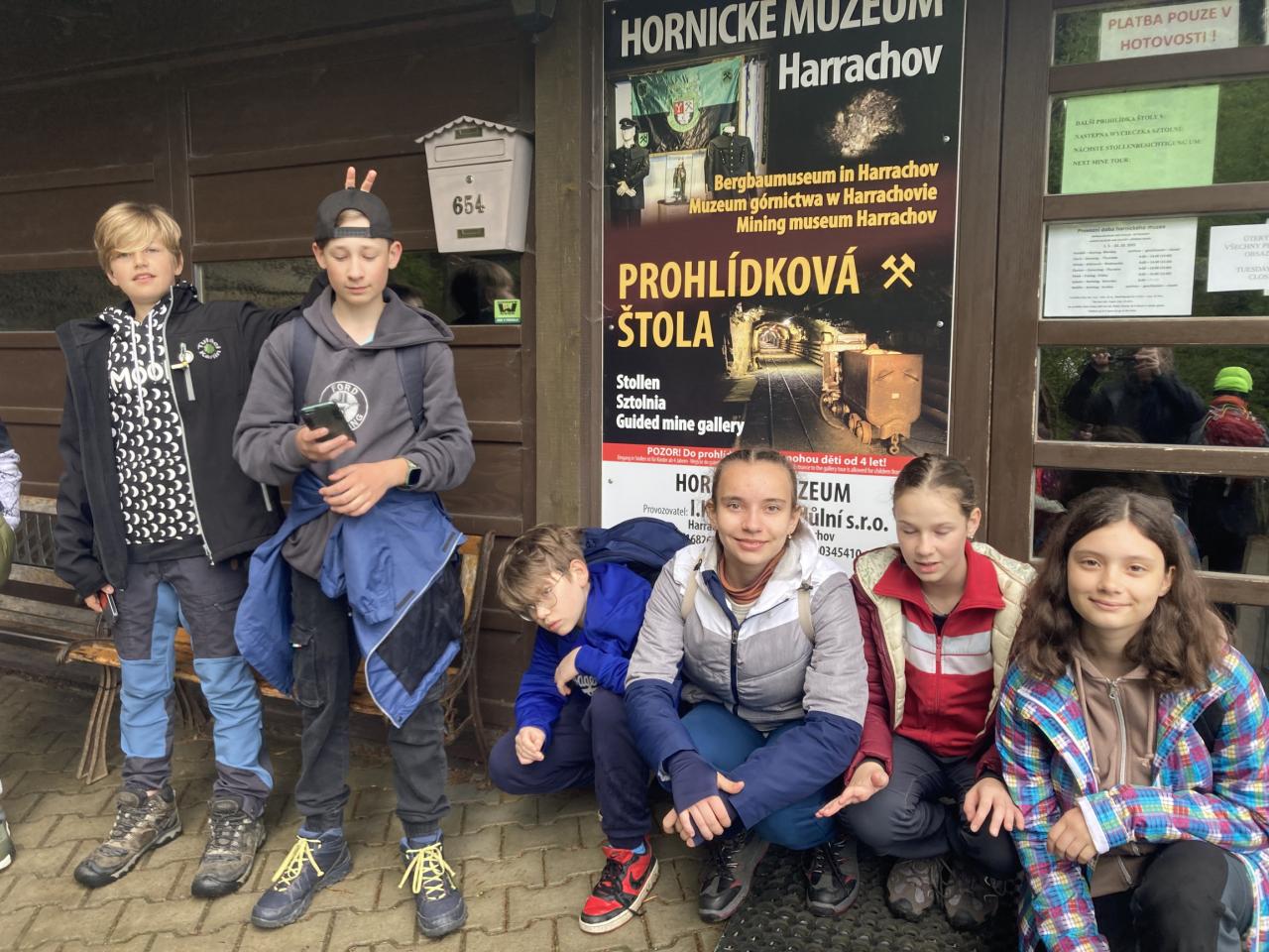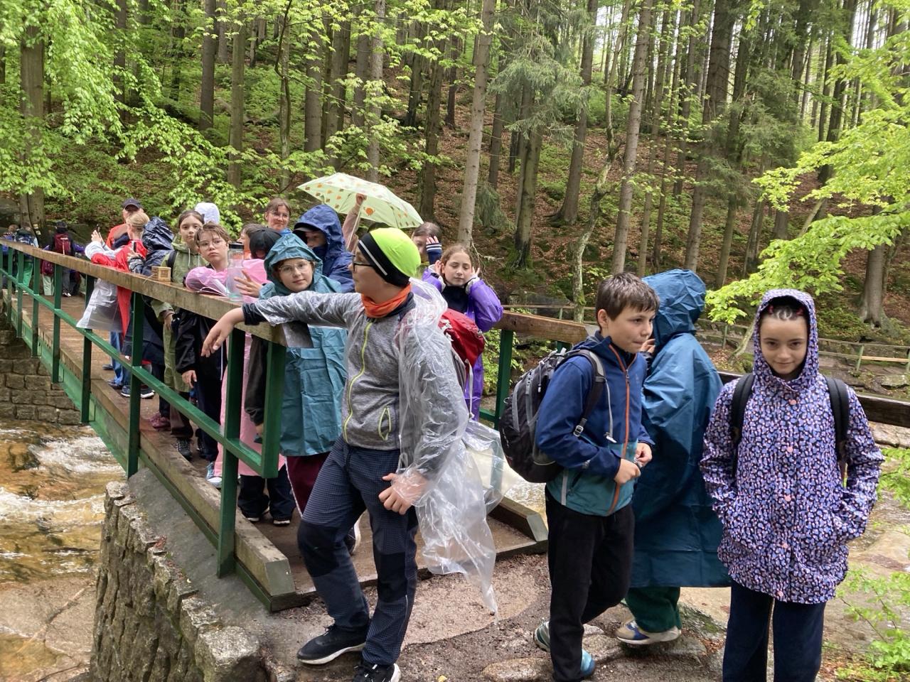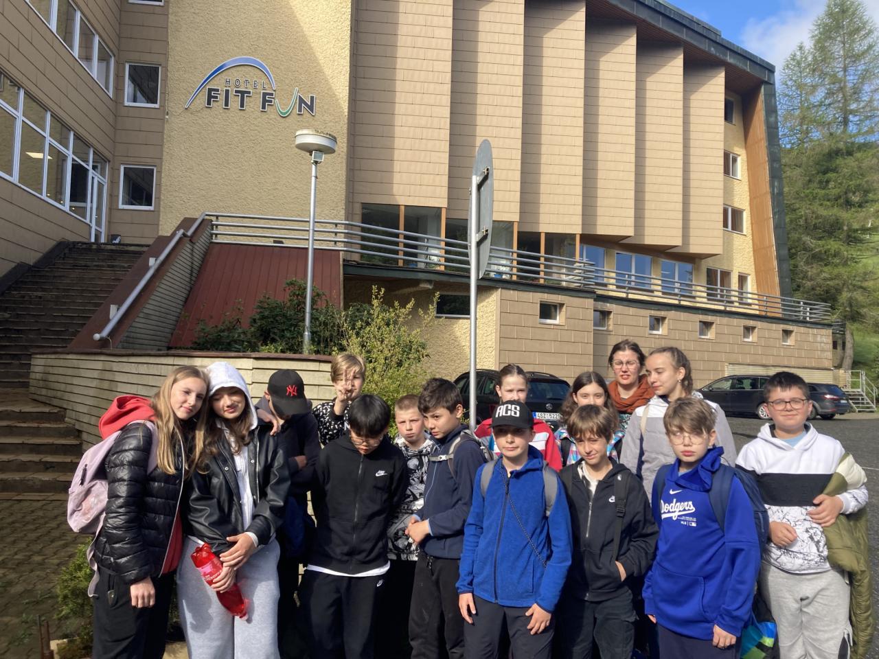 Náš výjezd začal v pondělí 19.5. Hned v 8:00h. Cesta byla plynulá a bezproblémová. Autobus nás dovezl až k hotelu FitFun v Harrachově, začalo ubytování se a oběd. Odpoledne jsme se seznamovali s pravidly, řádem a instruktory, kteří měli připravený program KRAKONOŠOVA DRUŽINA. Tento program byl zaměřen na environmentální výchovu- ochranu přírody, ale také během her na stmelování kolektivu. Během našeho pobytu jsme také absolvovali exkurze- hornické muzeum a štola, sklárna Novosad a syn. Zvládli jsme také celodenní výlet na Ručičky, Dvoračky a Mumlavské vodopády. Vyzkoušeli jsme i hotelový bazén a poslední večer před odjezdem byla i diskotéka. I přes velmi proměnlivé počasí jsme se domů vrátili bez úrazů a nemoci.