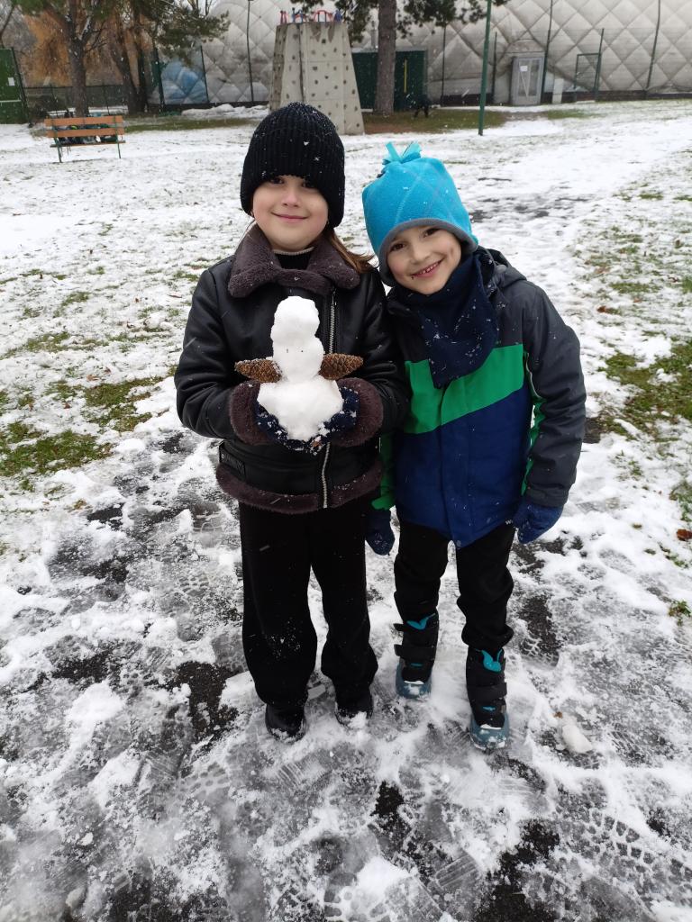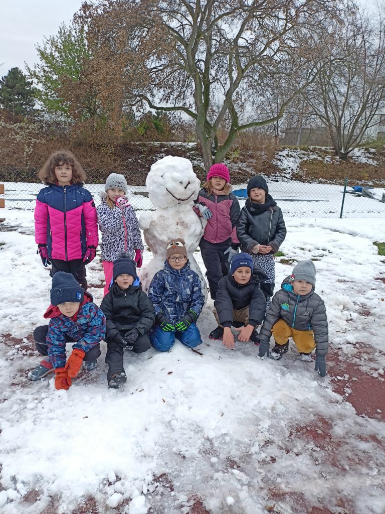 Děti z 5.odd+lení stavěly sněhuláky...