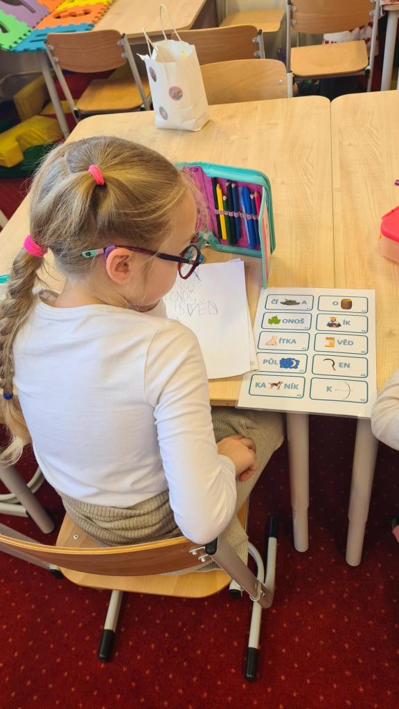 Po Velikonocích jsme pracovali s pohádkový kartami, vyprávěli si podle nich pohádku a úkol dokončili v pracovním listu.