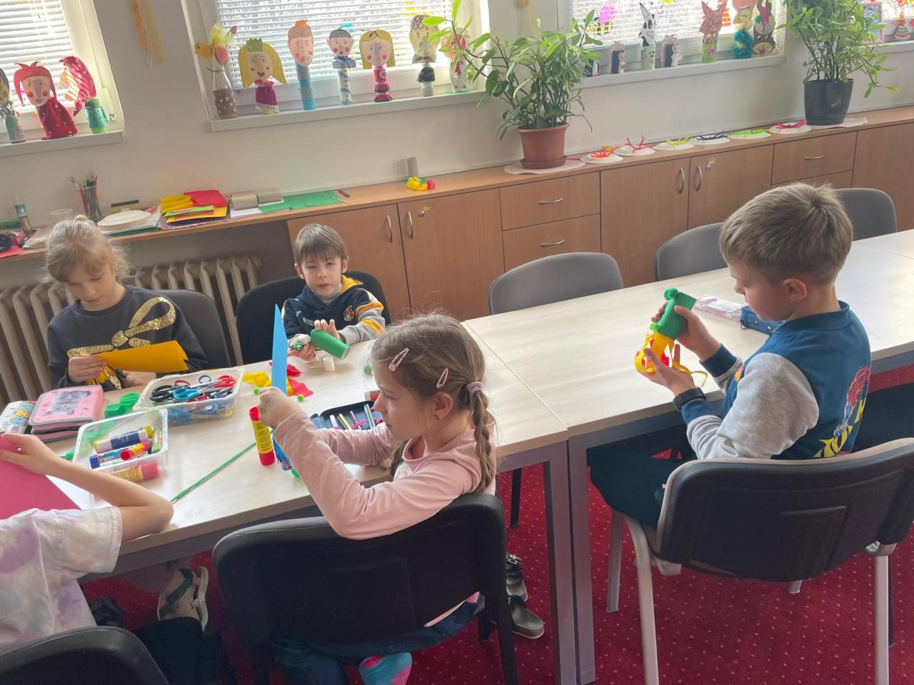 Děti tvoří v kroužku zajímavé výrobky.