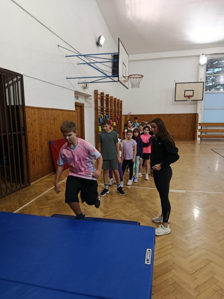 Nejčerstvější zkušeností je atletika. Průpravná cvičení a soubor her, tak vypadaly hodiny pod vedením trenérky. Spousta nových cviků, které testovaly odhodlání a obratnost, ale také hodně zábavných pohybových her u kterých šlo o spolupráci a komunikaci.